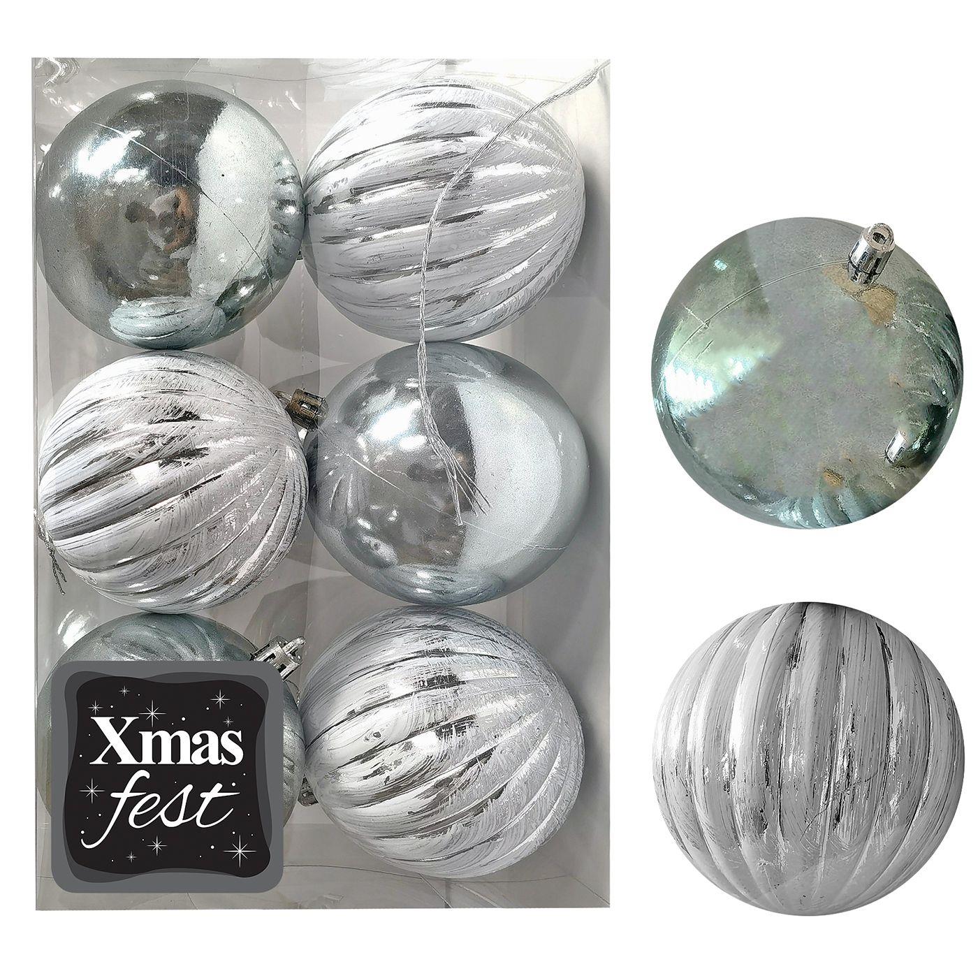 Μπάλες Ανάγλυφες Αντικέ μιξ με Γκριζοπράσινες πακ=6τεμ φ8 ø8cm Xmasfest 1133583