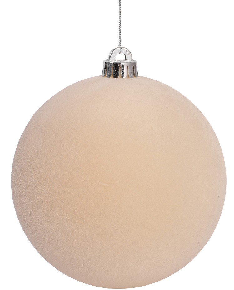 Μπέζ Βελουτέ Πλαστική Χριστουγεννιάτικη Μπάλα 8cm,Σέτ/6 Τεμαχίων