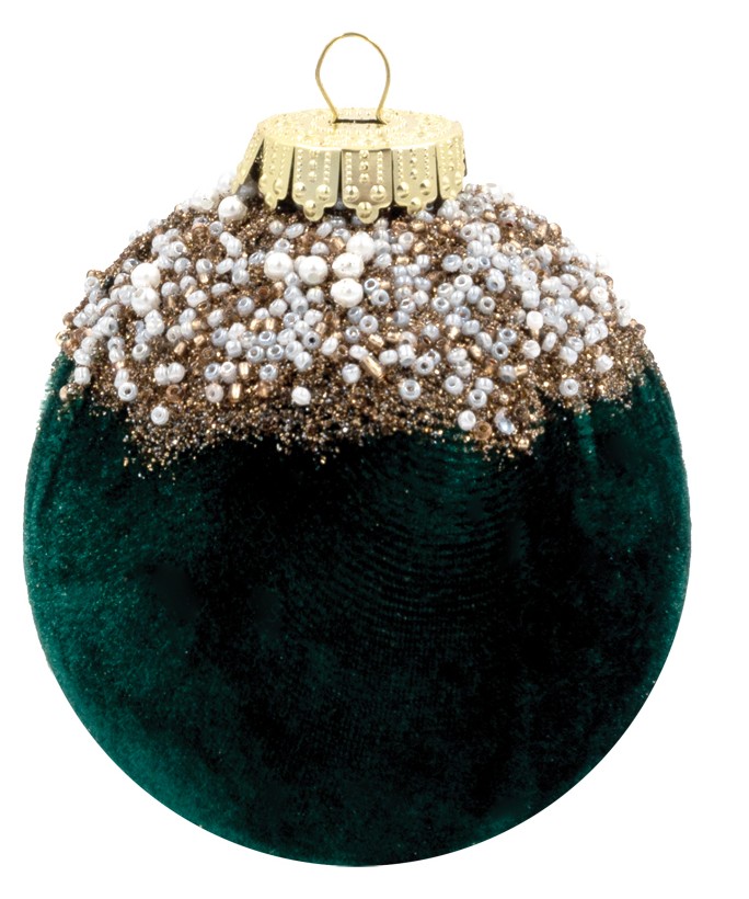 Πράσινη Βελουτέ Πλαστική Χριστουγεννιάτικη Μπάλα 10cm,Σέτ/4 Τεμαχίων