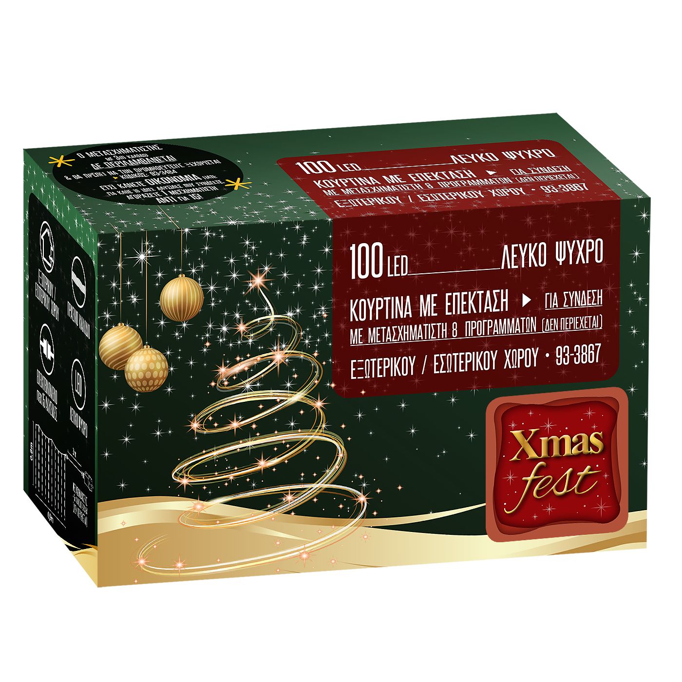 100 Λαμπάκια LED Λευκό Ψυχρό Κουρτίνα με Επέκταση & Προγράμματα IP44 90x80cm (δεν Περιέχεται ο Μετασχηματιστής) Xmasfest 1133887