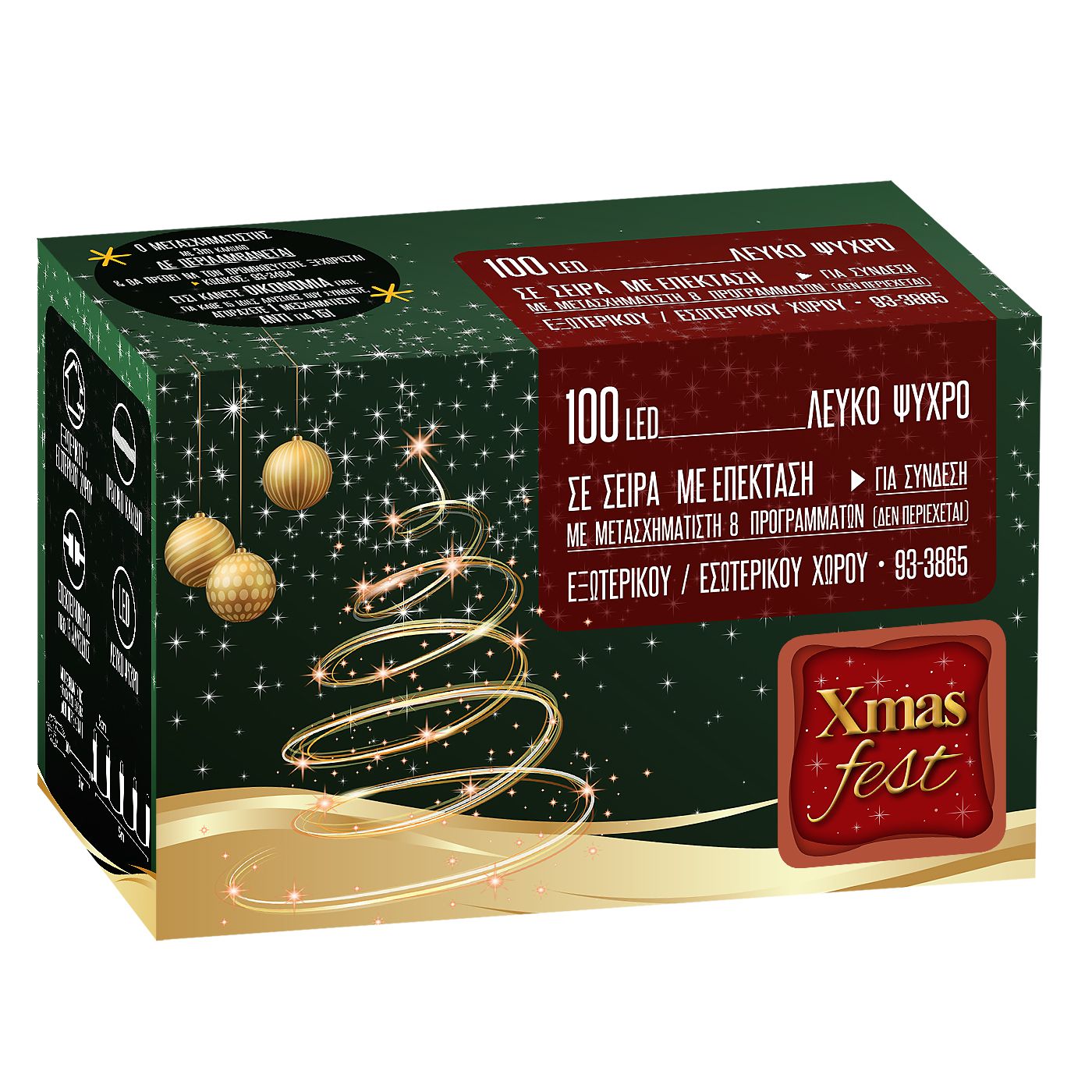 100 Λαμπάκια LED Λευκό Ψυχρό σε Σειρά με Επέκταση & Προγράμματα IP44 5m (δεν Περιέχεται ο Μετασχηματιστής) Xmasfest 1133885