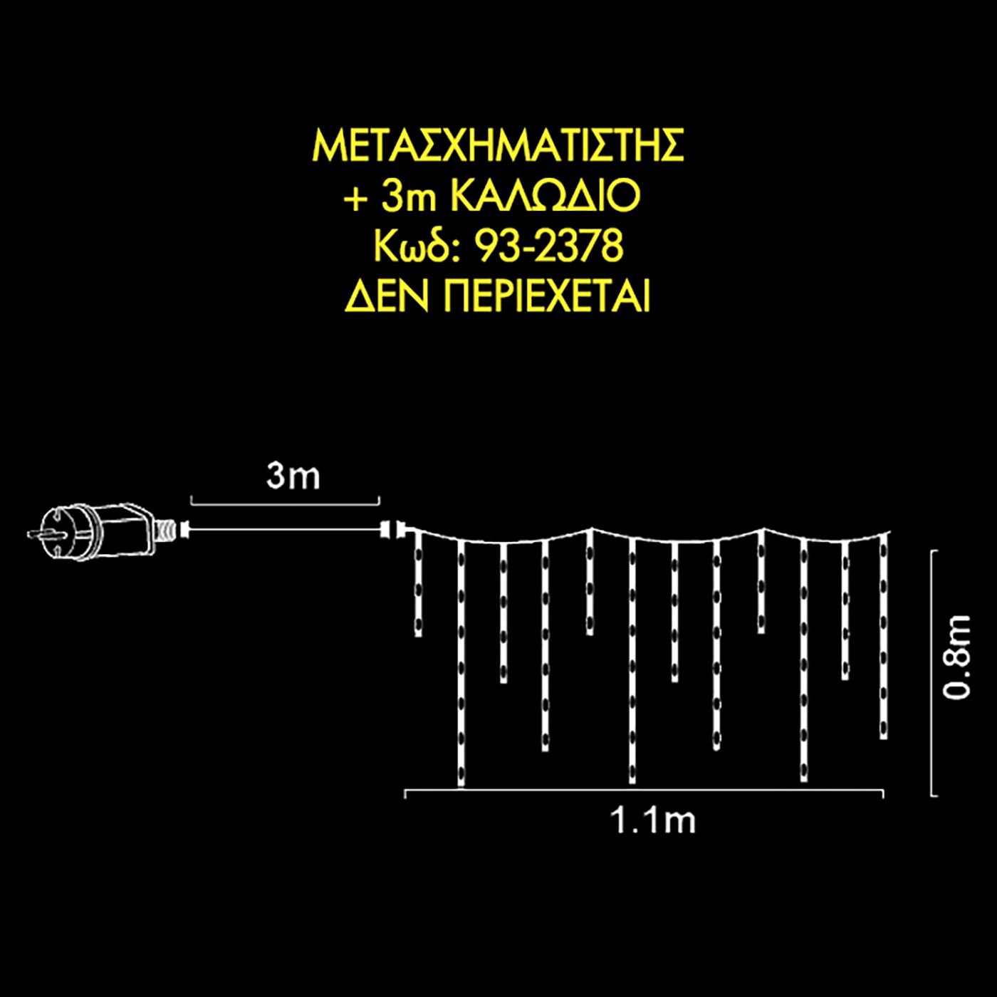 100 led λευκό ψυχρό βροχή επεκτεινόμενα (σύνδεση max.5 σειρές). Για εξωτερικό & εσωτερικό χώρο. Δεν περιέχεται ο μετασχηματιστής (κωδικός 93-2378) & 3m καλώδιο, σταθερού φωτισμού