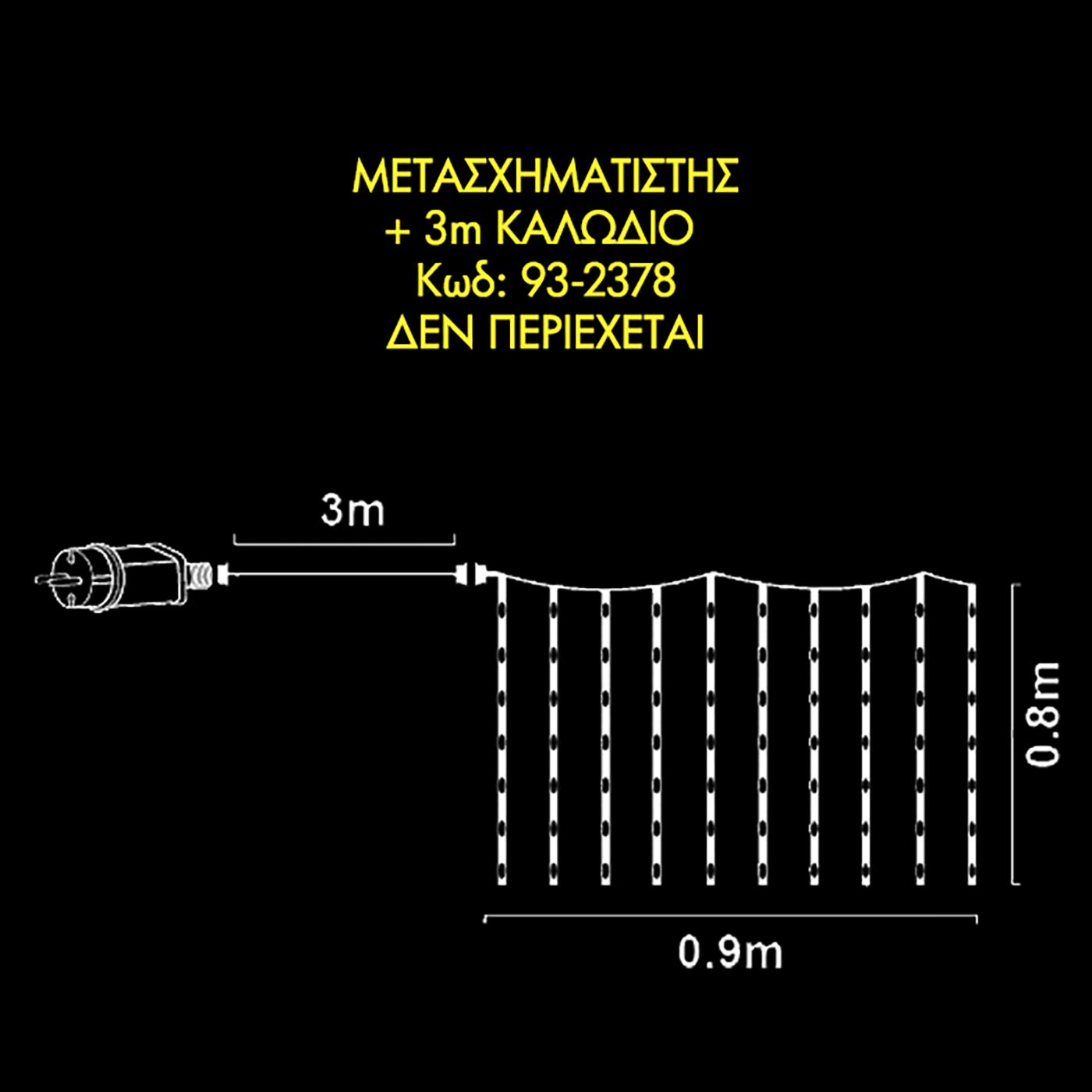 100 led λευκό θερμό κουρτίνα επεκτεινόμενα (σύνδεση max.5 σειρές). Για εξωτερικό & εσωτερικό χώρο. Δεν περιέχεται ο μετασχηματιστής (κωδικός 93-2378) & 3m καλώδιο, σταθερού φωτισμού