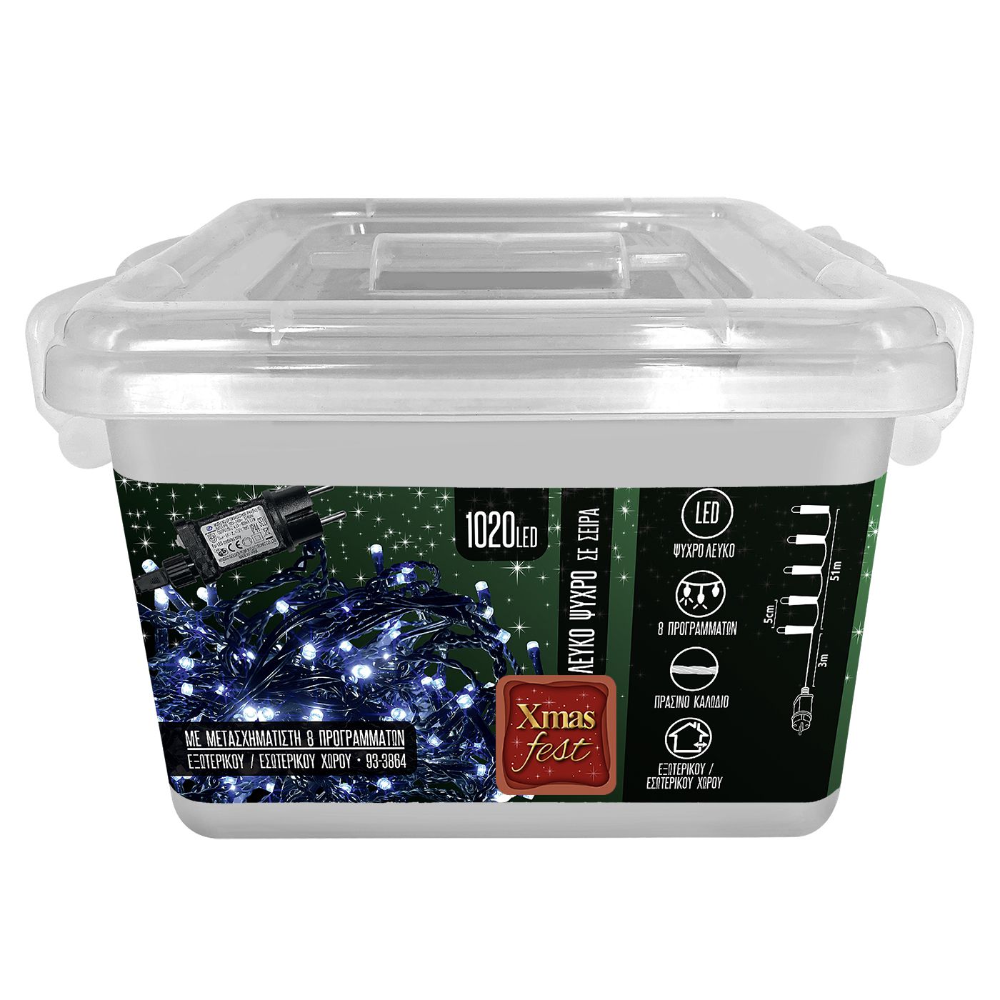 1020 Λαμπάκια LED Λευκό Ψυχρό σε Σειρά με Προγράμματα IP44 54m Xmasfest 1133884