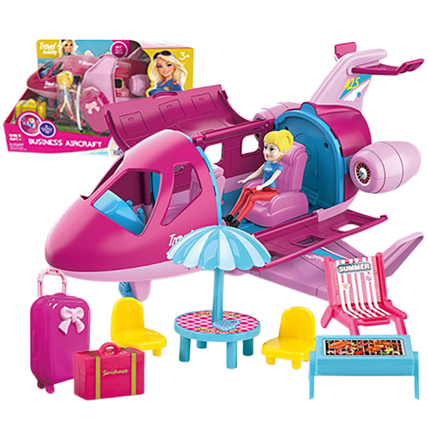 Αεροπλάνο με Κούκλα και Αξεσουάρ Ταξιδιού σετ 29x17x15cm ToyMarkt 971380