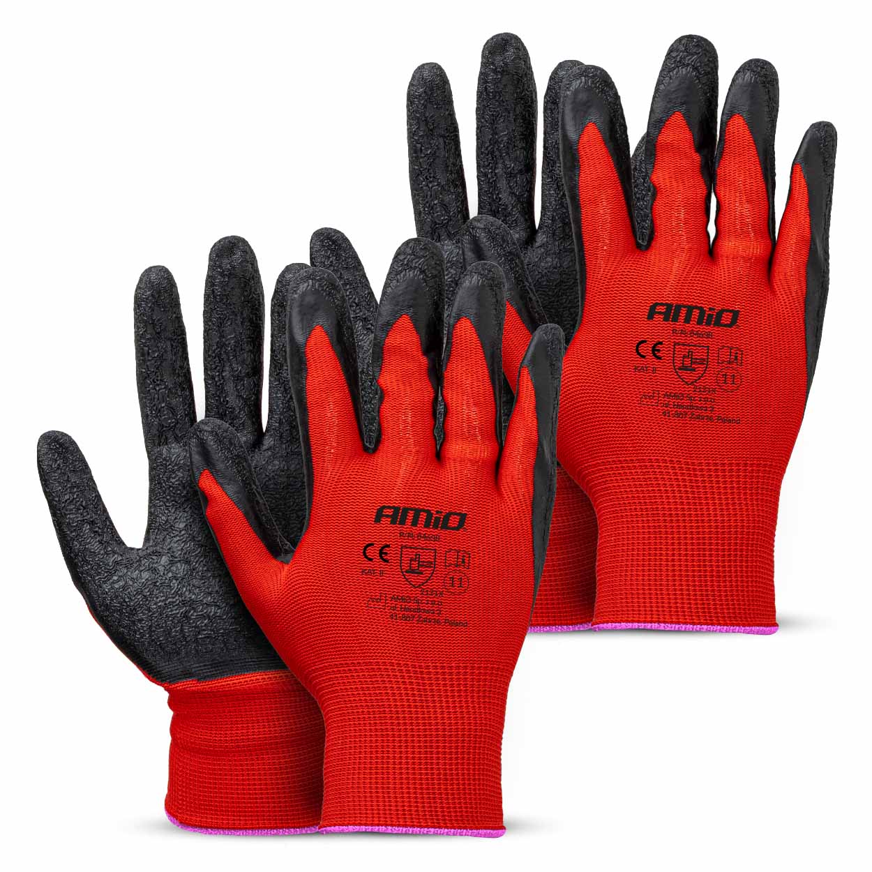 Amio - Γάντια Εργασίας με επικάλυψη λάτεξ χρώμα μαύρο/κόκκινο μέγεθος No.11 - 2 ζευγ. (04638/AM)
