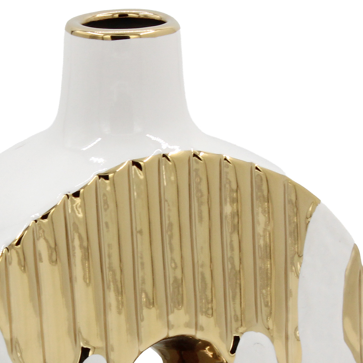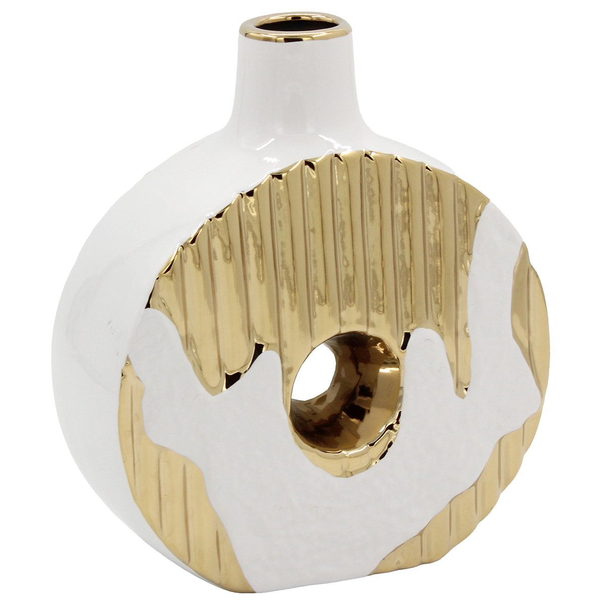 Αυτό το ανθοδοχείο - διακοσμητικό κεραμικό 10Χ8Χ21,5 εκ. σε λευκό και χρυσό ταιριάζει απόλυτα σε μοντέρνους και minimal χώρους.