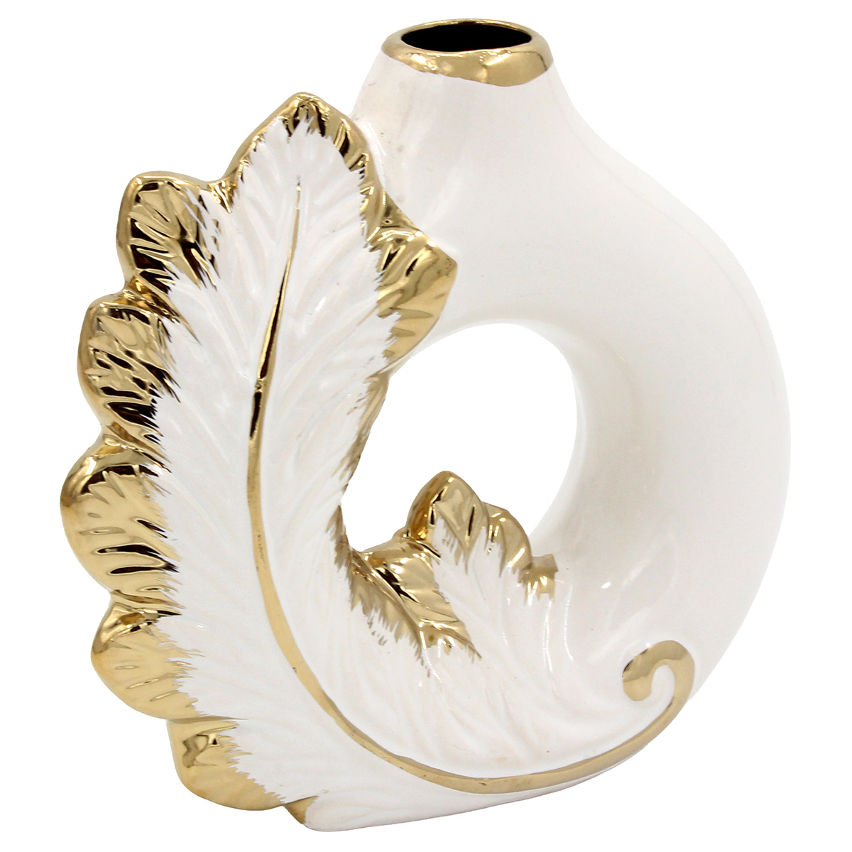 Ανθοδοχείο - Διακοσμητικό κεραμικό 15Χ5Χ14,5 εκ. Λευκό Χρυσό