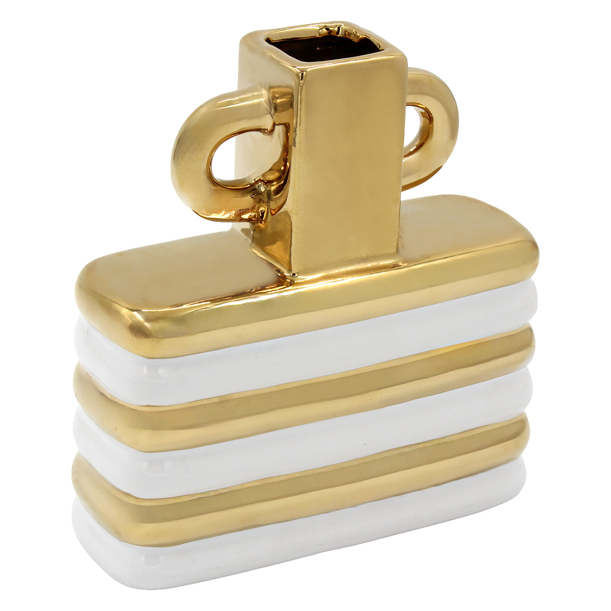 Ανθοδοχείο - Διακοσμητικό κεραμικό 16Χ6Χ17 εκ. Λευκό Χρυσό