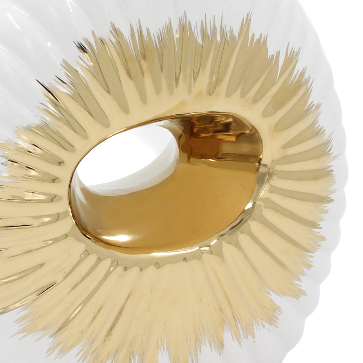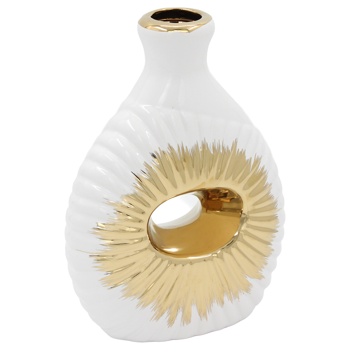 Αυτό το ανθοδοχείο - διακοσμητικό κεραμικό σε λευκό και χρυσό χρώμα 16Χ7Χ22 εκ. δίνει μοντέρνα αίσθηση και λαμπερή λεπτομέρεια. Ταιριάζει υπέροχα σε σαλόνι, τραπεζαρία ή γραφείο.