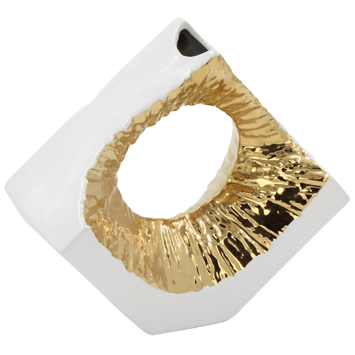 Ανθοδοχείο - Διακοσμητικό κεραμικό 18Χ7Χ16 εκ. Λευκό Χρυσό