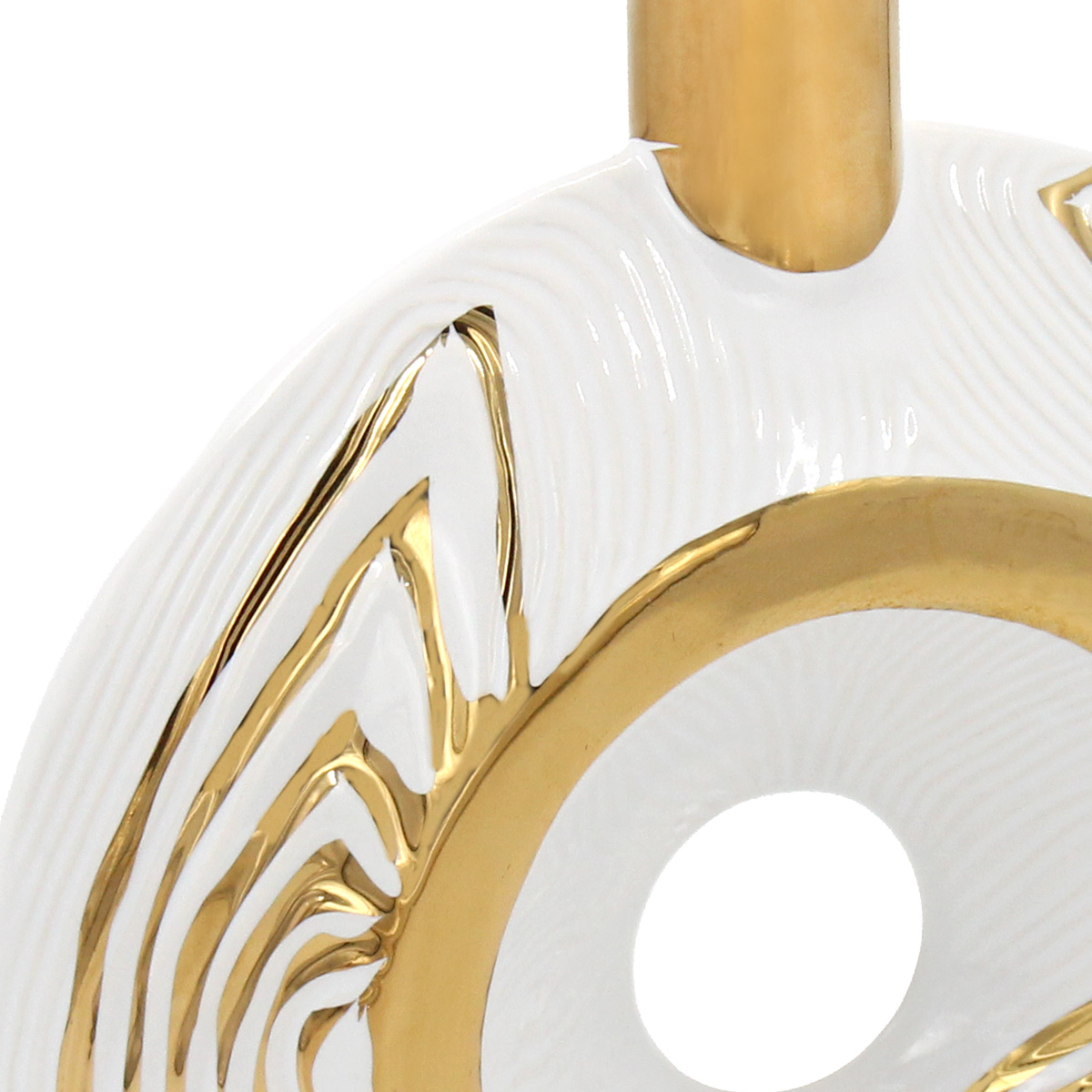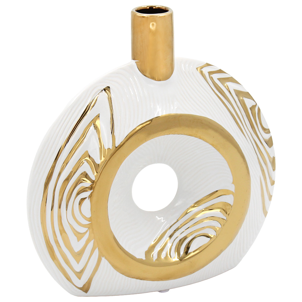 Αυτό το ανθοδοχείο - διακοσμητικό κεραμικό σε λευκό και χρυσό χρώμα 20Χ6Χ21 εκ. εντυπωσιάζει με τη λιτή του αισθητική. Ένα κομμάτι που αναδεικνύει τον χώρο με διακριτικό τρόπο.