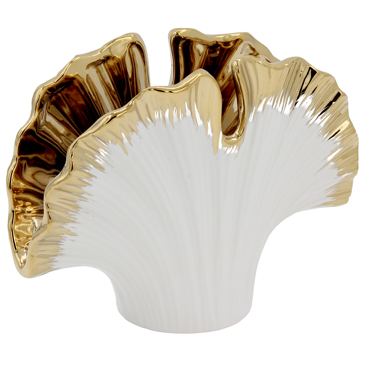 Ανθοδοχείο - Διακοσμητικό κεραμικό 21Χ8Χ16 εκ. Λευκό Χρυσό