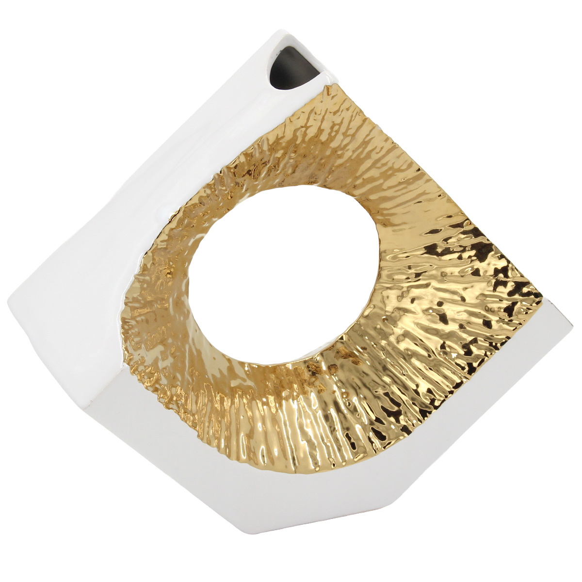 Αυτό το ανθοδοχείο - διακοσμητικό κεραμικό σε λευκό και χρυσό χρώμα 24Χ9,5Χ21 εκ. προσθέτει εκλεπτυσμένη και λαμπερή νότα. Κατάλληλο για κάθε στυλ χώρου.
