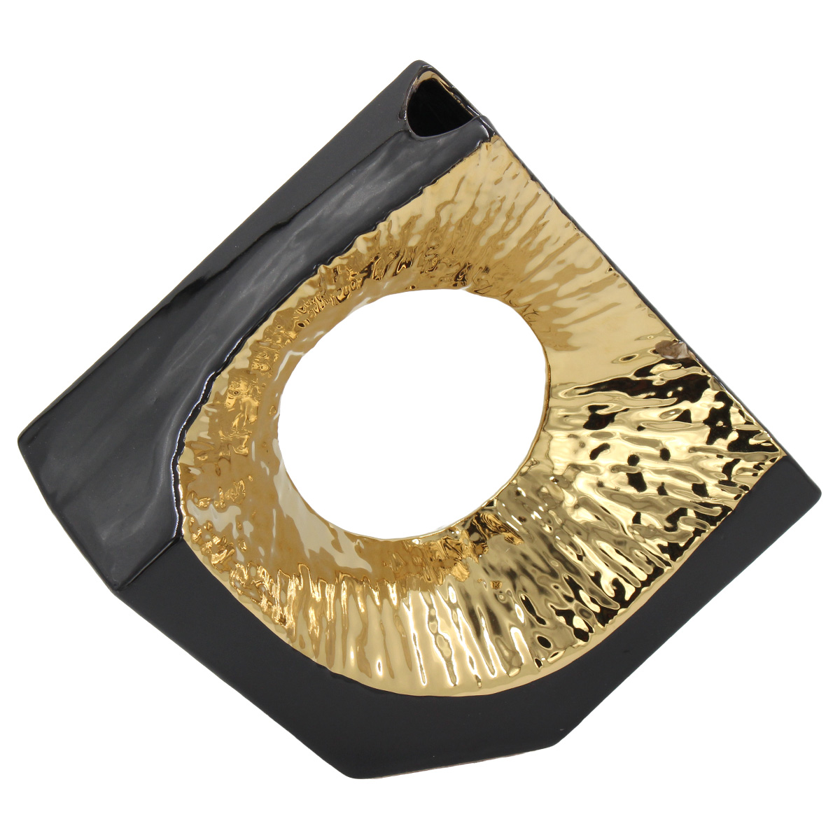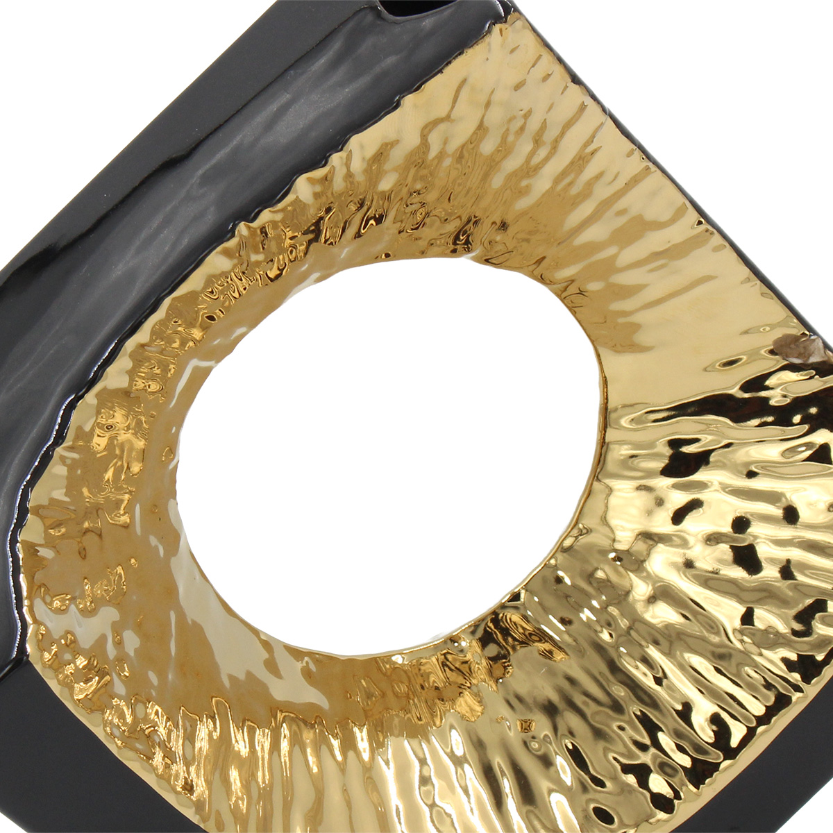 Αυτό το ανθοδοχείο - διακοσμητικό κεραμικό σε μαύρο και χρυσό χρώμα 24Χ9,5Χ21 εκ. δίνει πολυτελή και σύγχρονη αίσθηση. Μια κομψή προσθήκη για κάθε δωμάτιο.