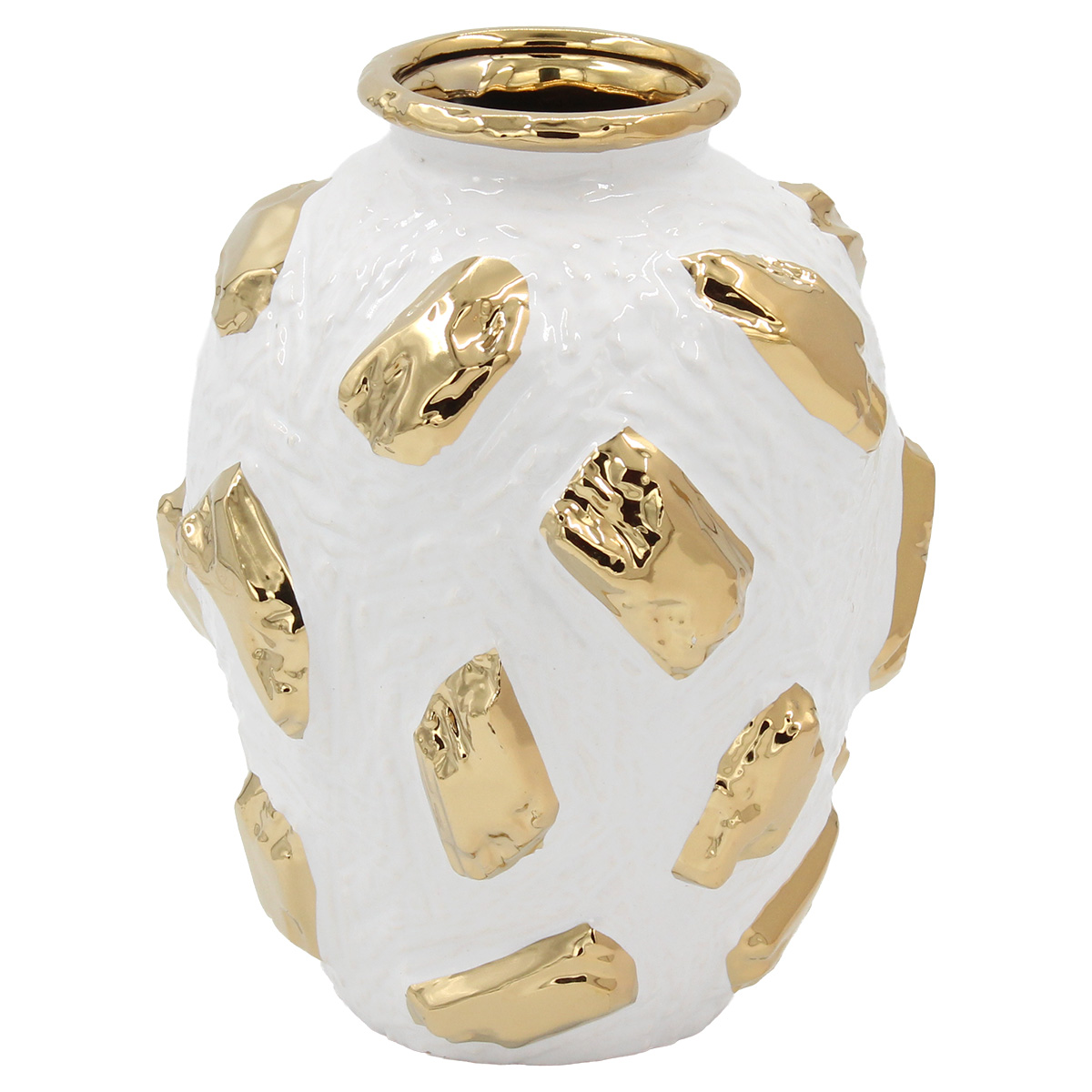 Ανθοδοχείο - Διακοσμητικό κεραμικό Φ16Χ19 εκ. Λευκό Χρυσό