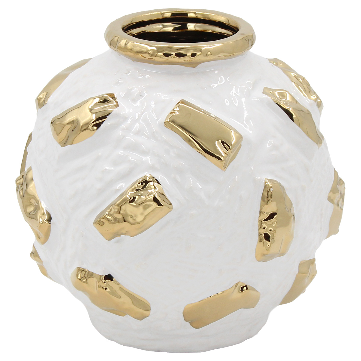Ανθοδοχείο - Διακοσμητικό κεραμικό Φ17Χ16 εκ. Λευκό Χρυσό