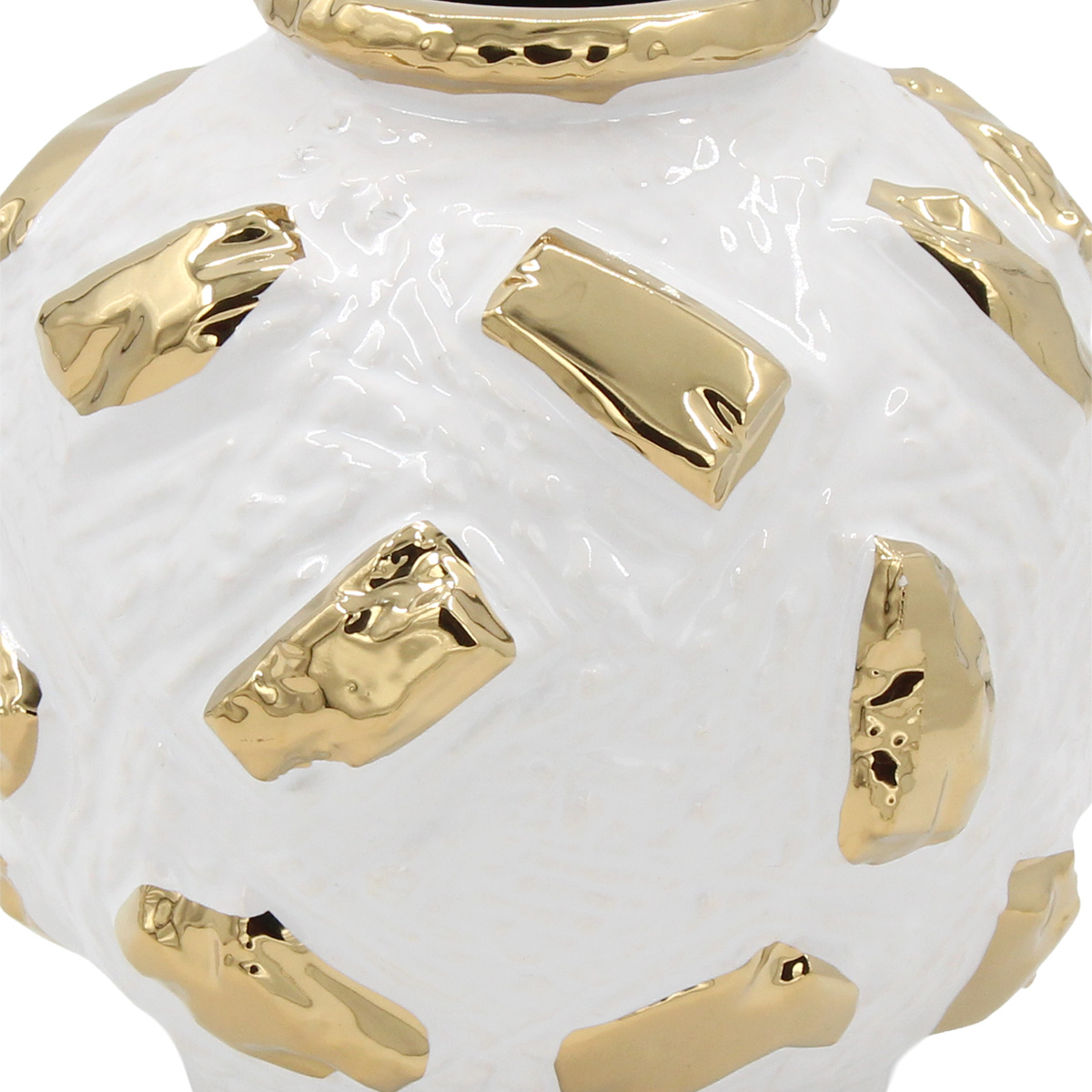 Ανθοδοχείο - Διακοσμητικό κεραμικό Φ17Χ16 εκ. Λευκό Χρυσό - KESKOR 80819