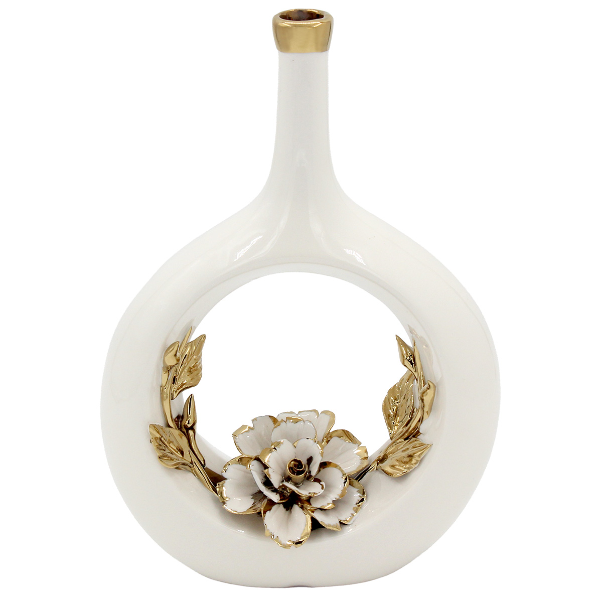 Αυτό το εντυπωσιακό κεραμικό ανθοδοχείο 16Χ7Χ24 εκ. σε λευκό και χρυσό με λουλούδια προσφέρει μοναδική λάμψη και κομψότητα σε κάθε χώρο.