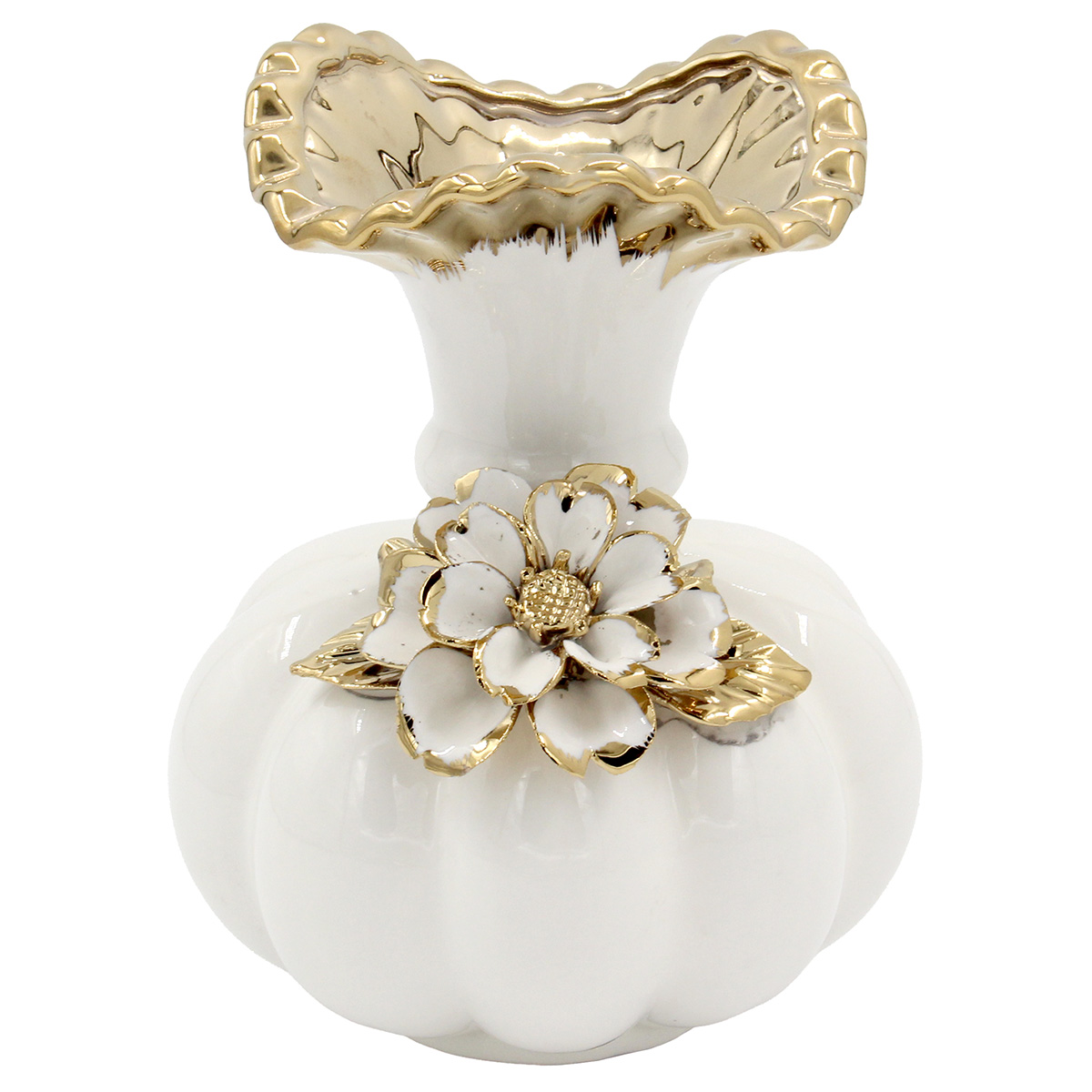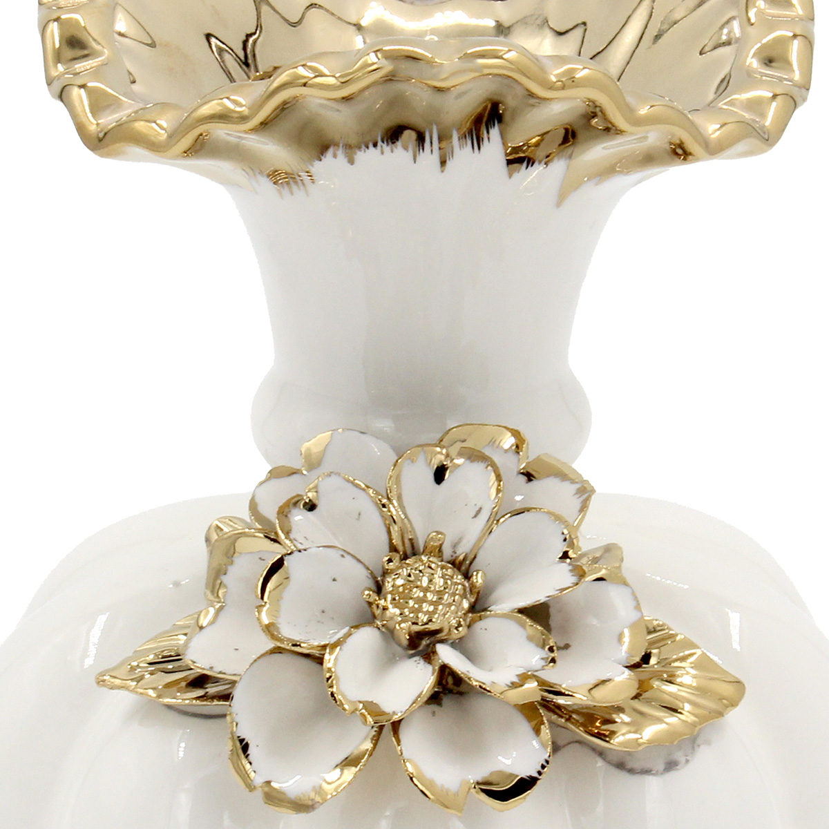 Ανθοδοχείο κεραμικό Φ15Χ19 εκ. Λευκό Χρυσό με λουλούδια - KESKOR 57739
