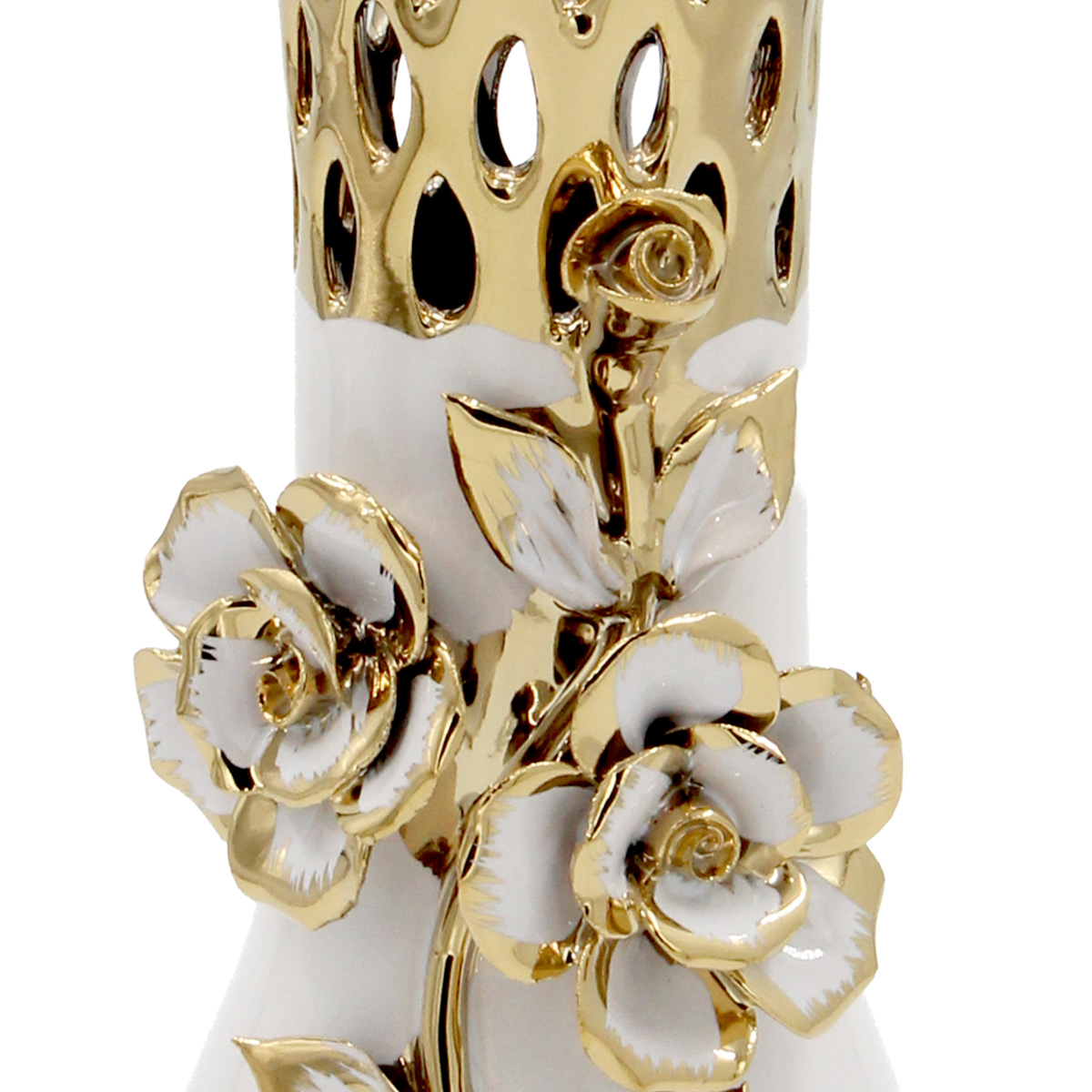 Ανθοδοχείο κεραμικό Φ8Χ25 εκ. Λευκό Χρυσό με λουλούδια - KESKOR 57733