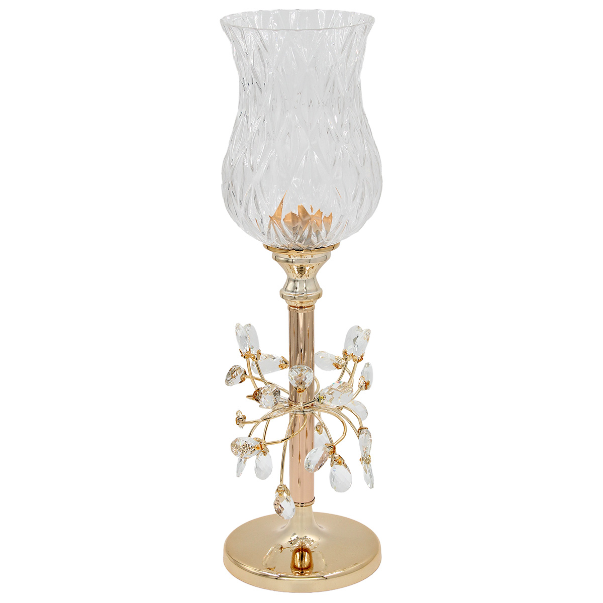 Ανθοστήλη - Κηροπήγιο μεταλλικό Φ15Χ54 εκ. Χρυσό με γυαλί και κρύσταλλα - KESKOR 43283