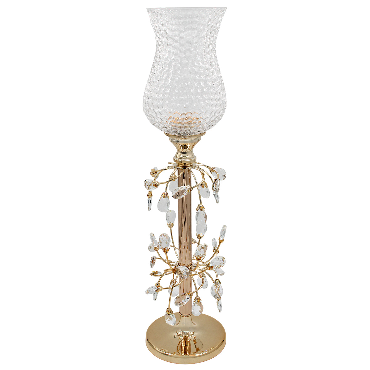 Ανθοστήλη - Κηροπήγιο μεταλλικό Φ15Χ65 εκ. Χρυσό με γυαλί και κρύσταλλα