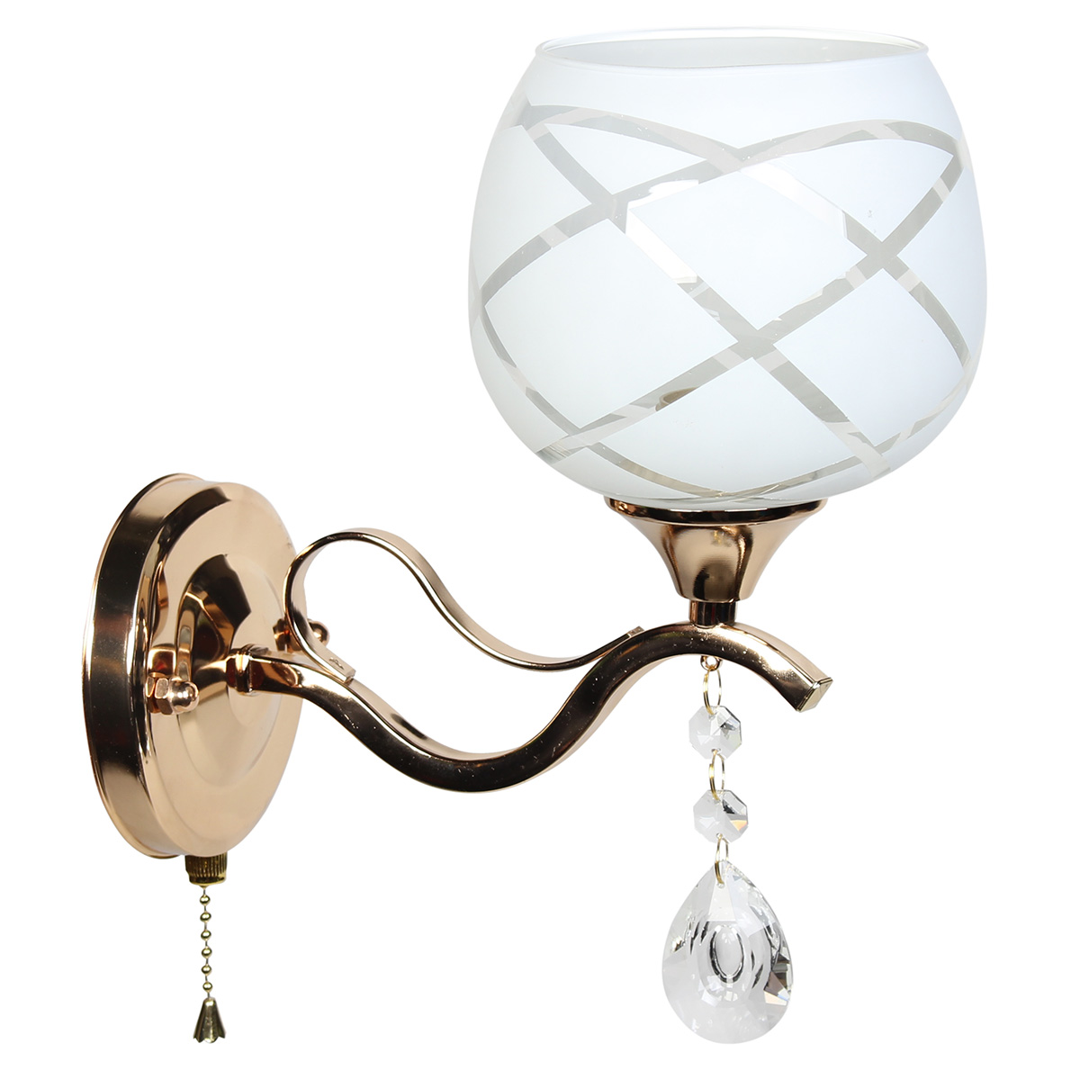 Απλίκα τοίχου Ε27 12Χ22Χ26 εκ. χρυσή με γυαλί και κρύσταλλο. Διαθέτει διακόπτη ON/OFF.