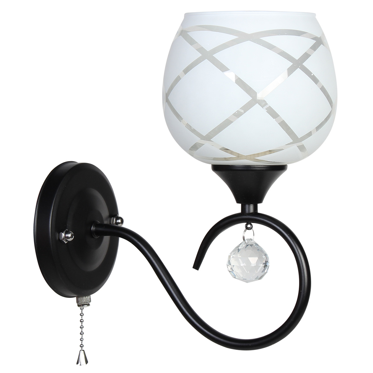 Απλίκα τοίχου Ε27 12Χ22Χ26 εκ. μαύρη με γυαλί και κρύσταλλο. Διαθέτει διακόπτη ON/OFF.