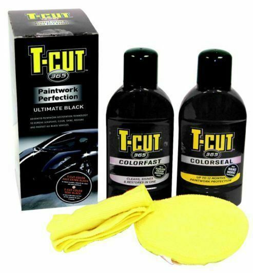 Κιτ προστασίας/γυαλίσματος βαφής και επιδιόρθωσης γρατζουνιών σε μαύρο χρώμα της σειράς T-CUT PAINTWORK της εταιρίας Carplan, αγγλικής προέλευσης. Η T-Cut έχει αναπτύξει ένα ειδικό μείγμα αποκλειστικών προϊόντων που έχουν σχεδιαστεί για να αφαιρούν τις γρατσουνιές και να επαναφέρουν ένα βρώμικο, σκονισμένο όχημα στην αρχική του μορφή. Το T-Cut 365 Ultimate θα επαναφέρει τη λάμψη στη βαφή του οχήματος, ενώ ταυτόχρονα γυαλίζει και σφραγίζει την επιφάνεια, διατηρώντας το αυτοκίνητό σας ολοκαίνουργιο για έως και 12 μήνες!