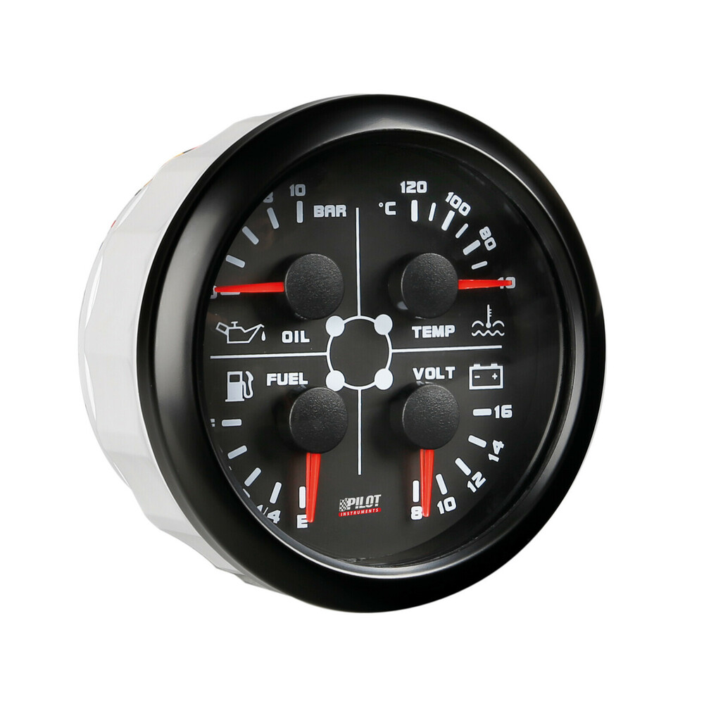 - Το Black Analogue Gauge Series 4-in-1 είναι ένα πολυλειτουργικό αναλογικό όργανο διαμέτρου 85 mm, σχεδιασμένο για αξιόπιστη παρακολούθηση βασικών λειτουργιών του οχήματος σε ένα μόνο καντράν.