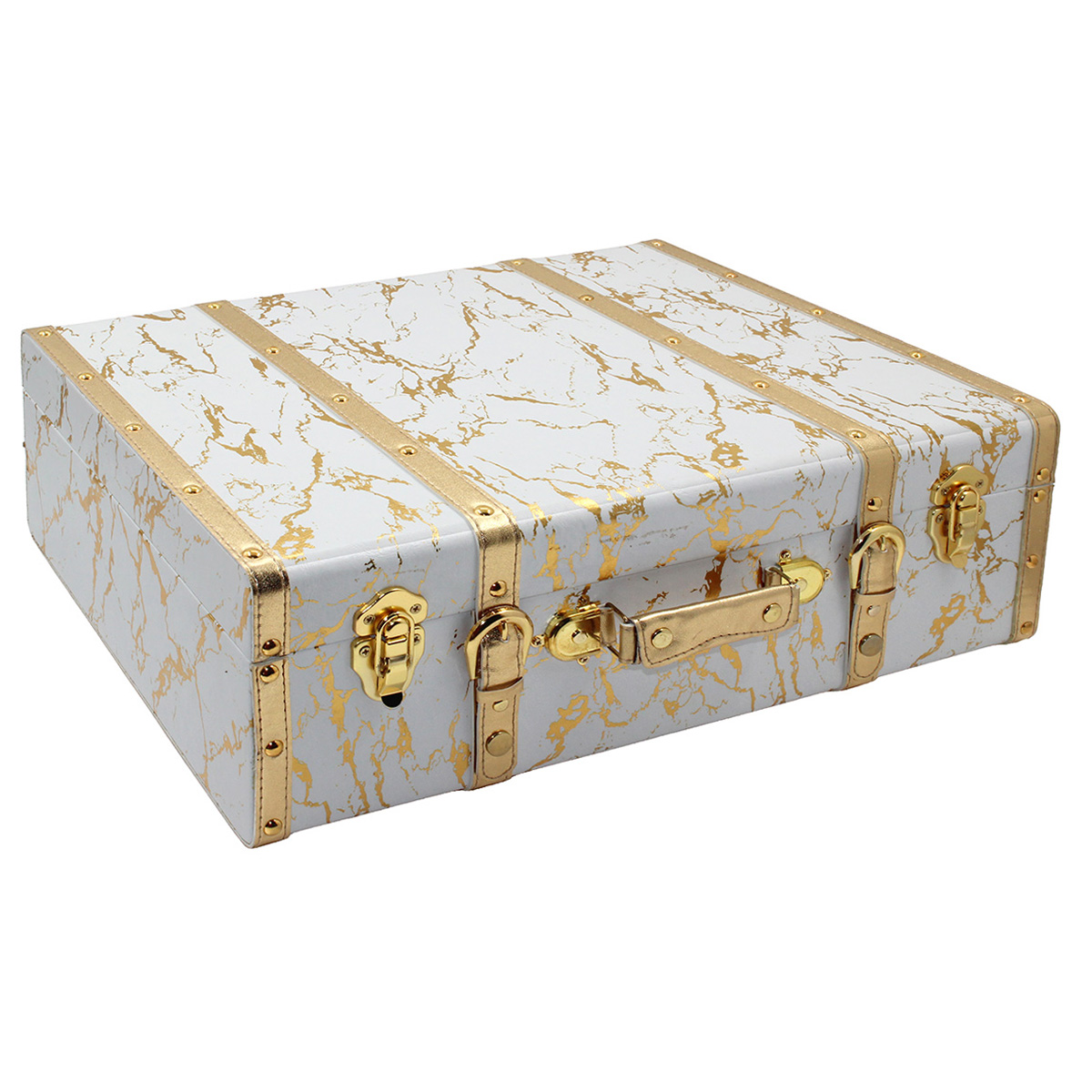 Αυτή η βαλίτσα-κουτί αποθήκευσης 50Χ35Χ18 εκ. από PU σε λευκό-χρυσό χαρίζει φωτεινότητα και σικ αίσθηση. Κατάλληλη για αποθήκευση και ως εντυπωσιακό διακοσμητικό στοιχείο.