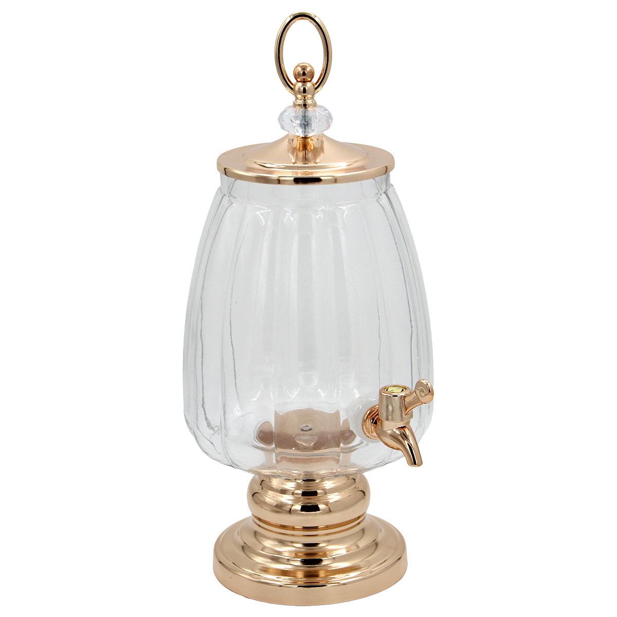 Βάζο – δοχείο γυάλινο κολωνάτο με καπάκι και βρυσάκι 3,5 λίτρα Φ17Χ41 εκ. Χρυσό