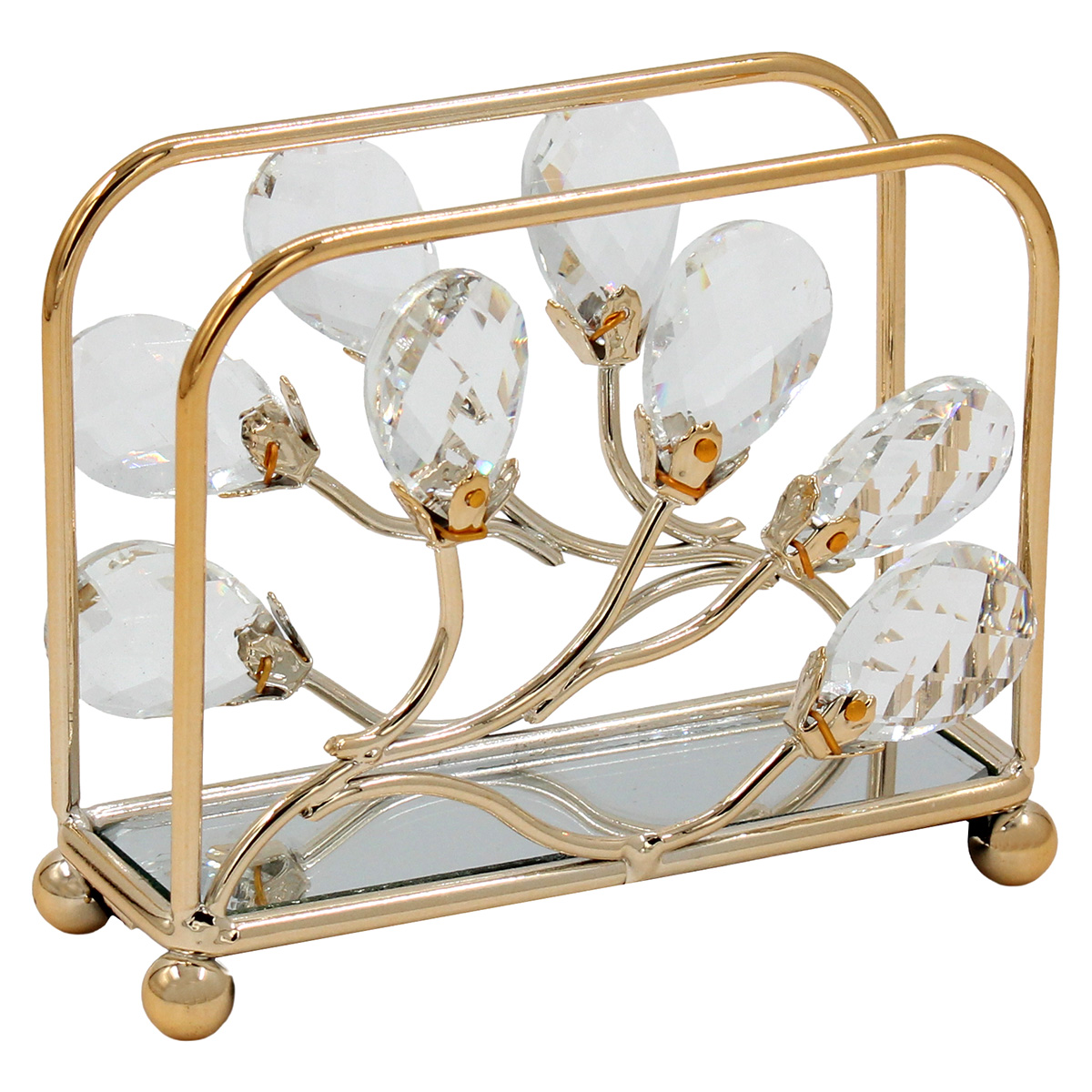 Αυτή η μεταλλική χαρτοπετσετοθήκη με κρύσταλλα και καθρέπτη αποπνέει πολυτέλεια. Είναι ιδανική για τραπεζαρίες και επίσημα τραπέζια.