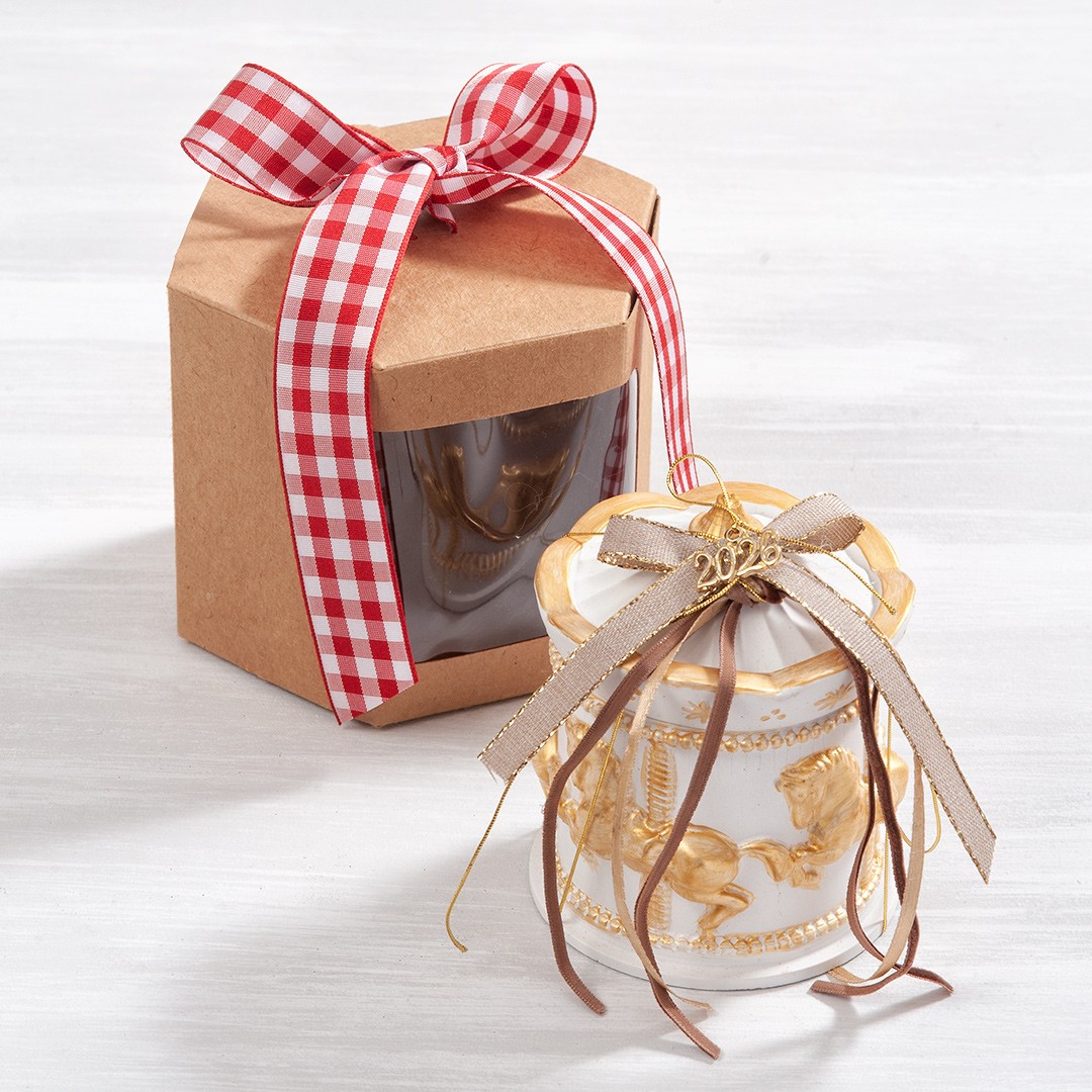 Χριστουγεννιάτικο γύψινο καρουζελ . Είναι ζωγραφισμένο με χρυσές λεπτομέρειες και στολισμένο με κορδέλες. Στην τιμή περιλαμβάνεται το χάρτινο κουτί και η αυτοκόλλητη ετικέτα αποστολής.