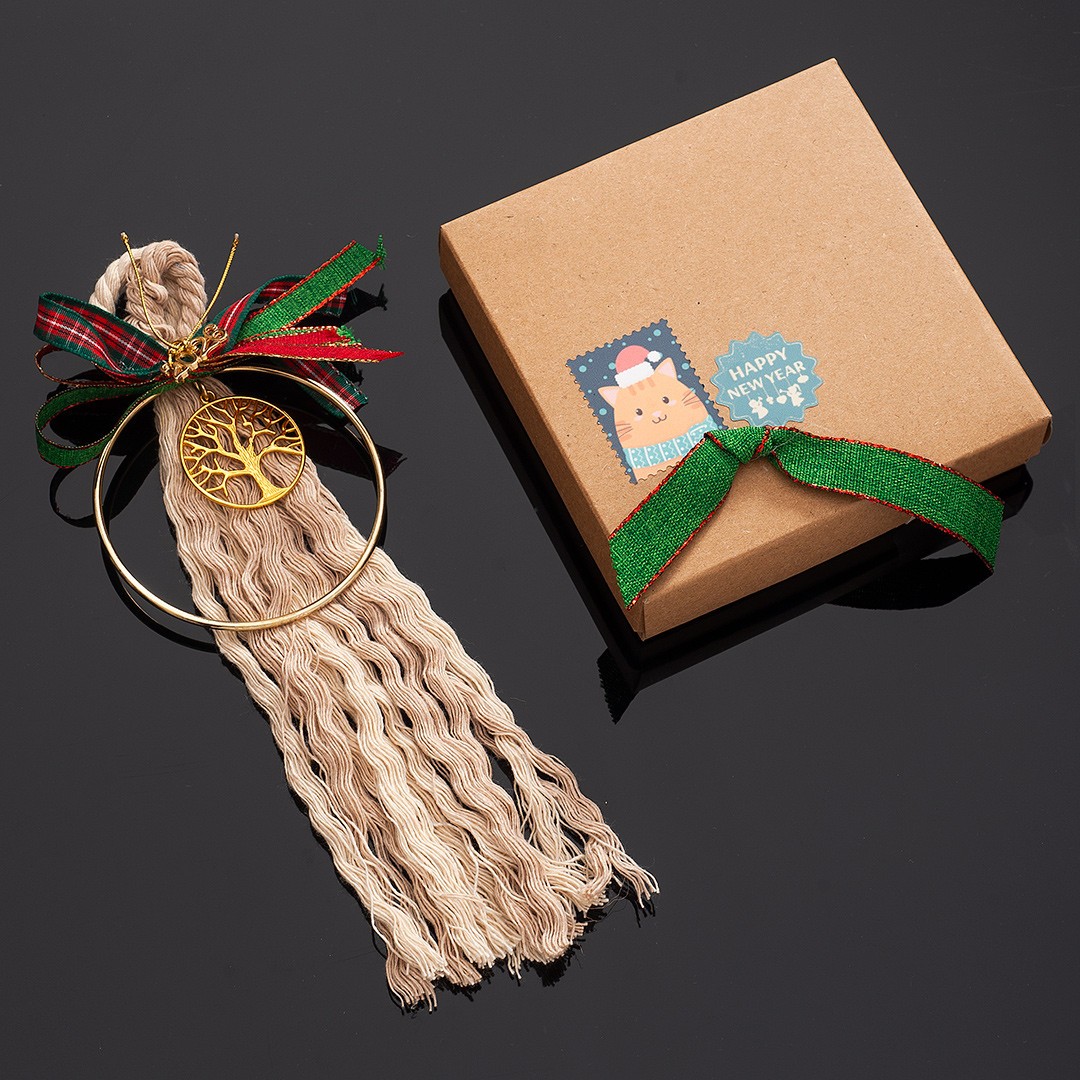 Χριστουγεννιάτικο κρεμαστό γούρι με μεταλλικό χρυσό μοτίφ δέντρο της ζωής σε κρίκο .Είναι στολισμένο με κορδόνι εκρού και καρώ κορδέλα. Το γούρι είναι τοποθετημένο σε χάρτινο κουτί craft.