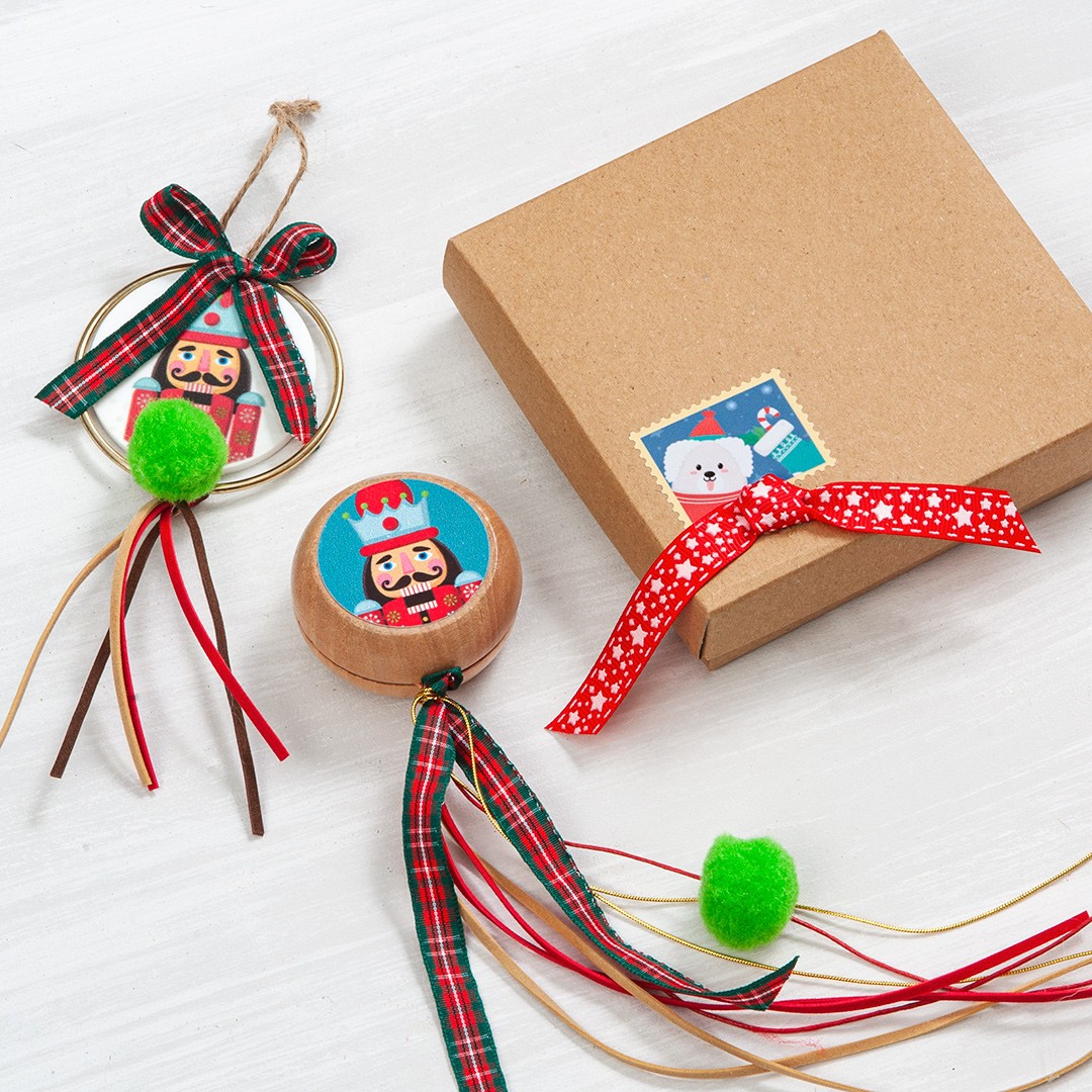 Χριστουγεννιάτικο σετ δώρου σε χάρτινο craft κουτί. Το δώρο έχει θέμα τον καρυοθραύστη. Περιλαμβάνει ξύλινο yoyo και κρεμαστό γούρι με plexiglass παράσταση.