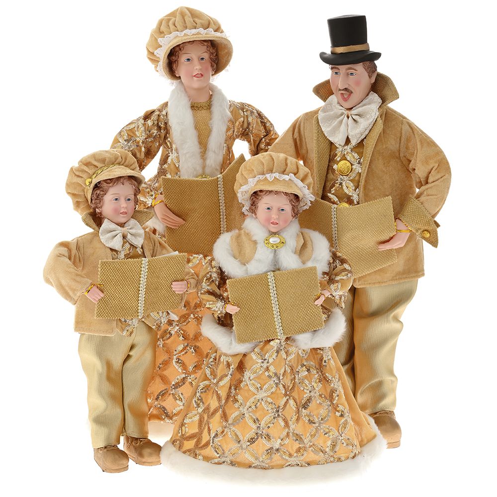 Βελούδινη οικογένεια 4 τεμαχίων που ψέλνει τα κάλαντα. Δεν έχει ήχο, ούτε κίνηση. Αποτελείται απο 4 ξεχωριστές φιγούρες. Τα παιδάκια 50εκ και το ζευγάρι 72εκ