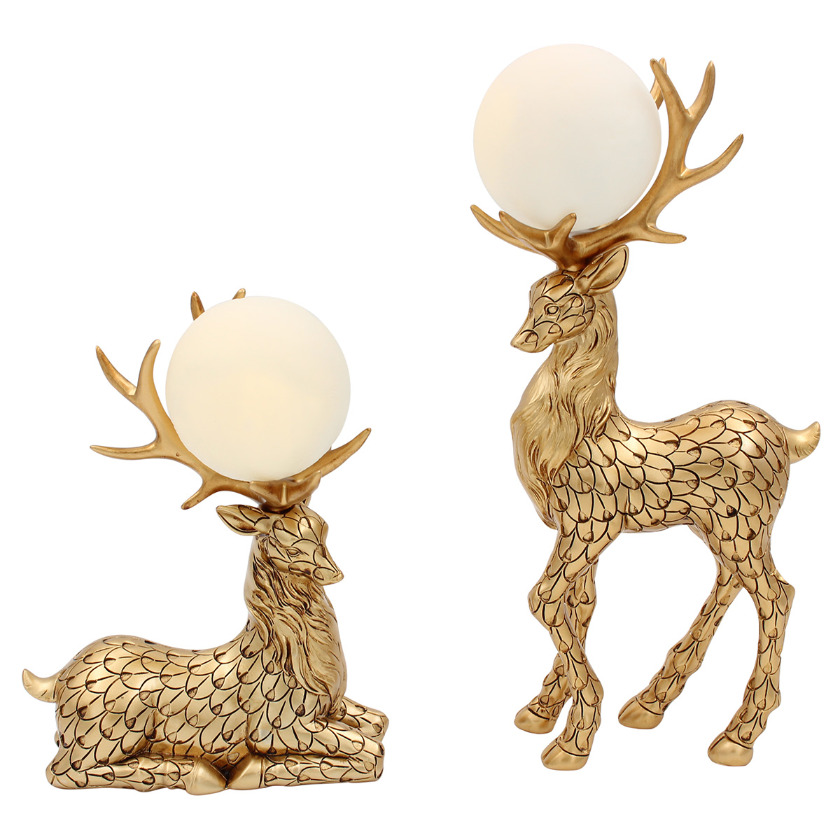 Διακοσμητικά polyresin τεμ 2 14Χ8Χ30 εκ. - 16Χ8Χ21 εκ. Ελάφια χρυσά με φωτιζόμενη μπάλα μπαταρίας.