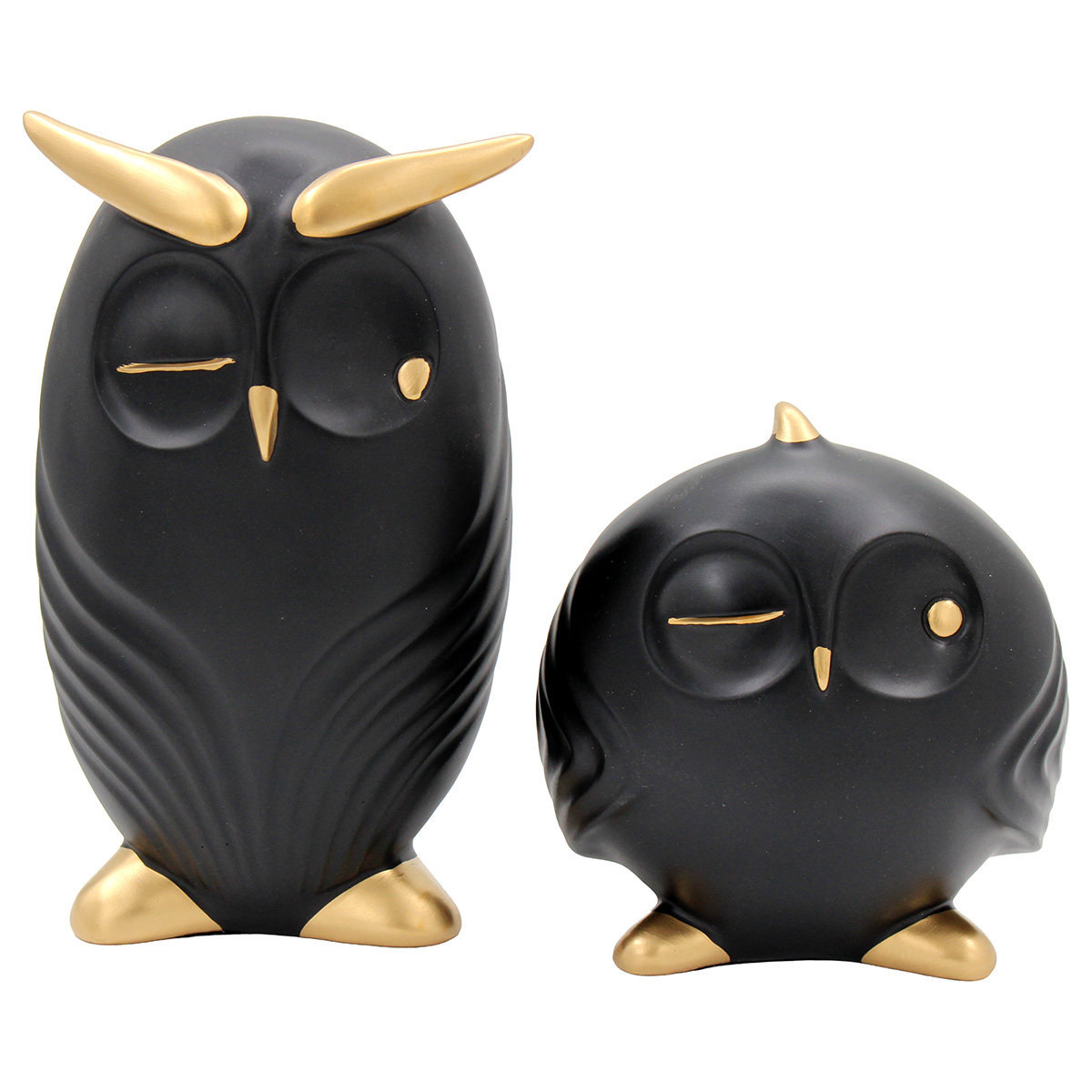 Διακοσμητικά Polyresin τεμ. 2 15Χ12Χ23 - 16Χ11Χ15 εκ. Κουκουβάγιες Μαύρο Χρυσό
