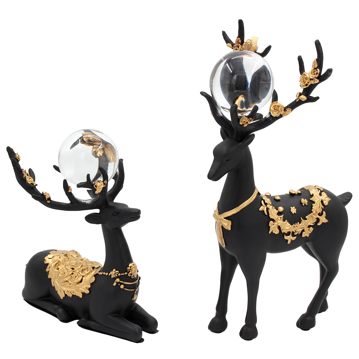 Διακοσμητικά polyresin τεμ 2 16Χ14Χ30 - 16Χ11Χ18 εκ. Ελάφια Μαύρα Χρυσά με γυάλινες μπάλες