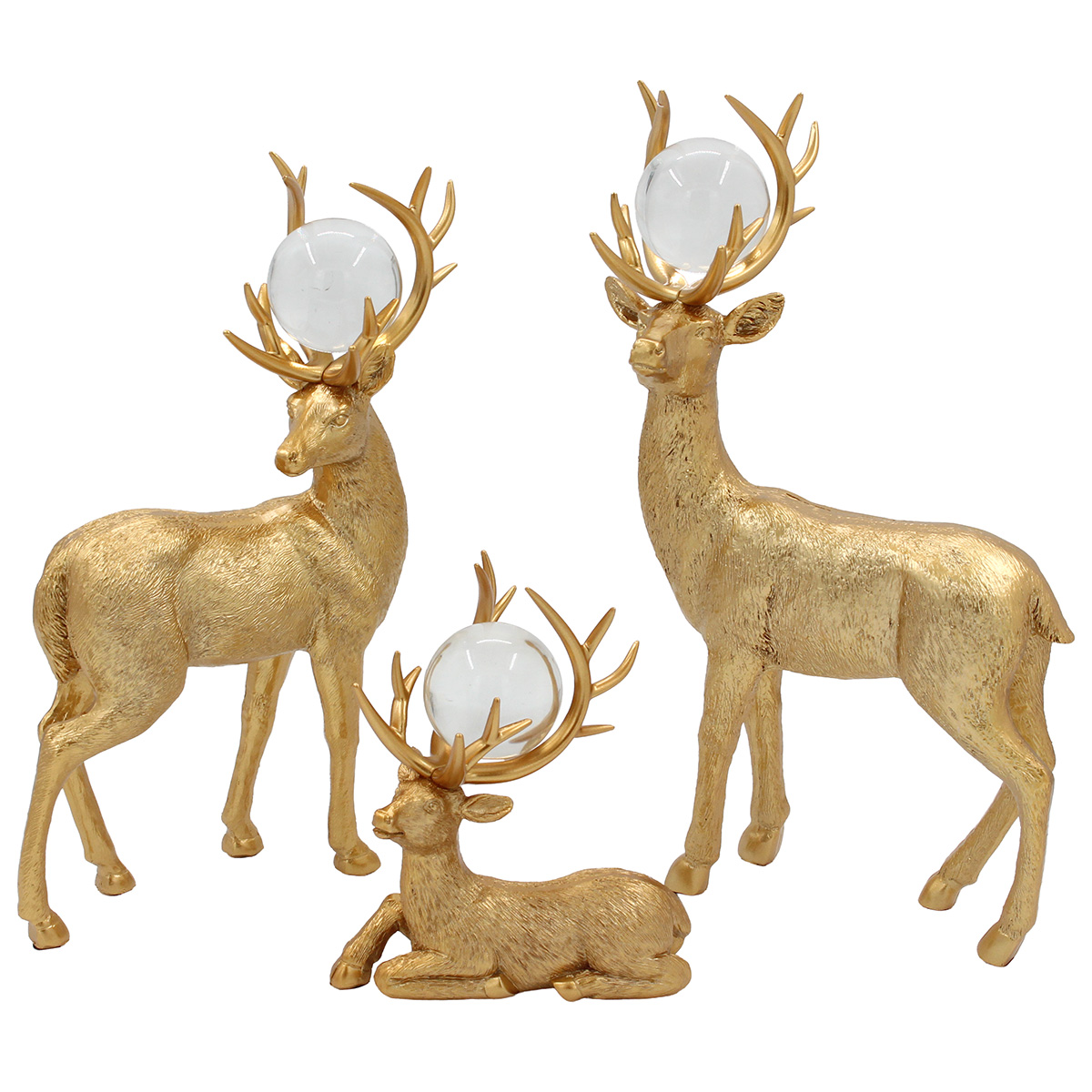 Διακοσμητικά polyresin τεμ 3 Ελάφια Χρυσά με γυάλινες μπάλες. Διάσταση: 18Χ9Χ30 εκ. Διάσταση: 18Χ9Χ28 εκ. Διάσταση: 13Χ8Χ15 εκ.
