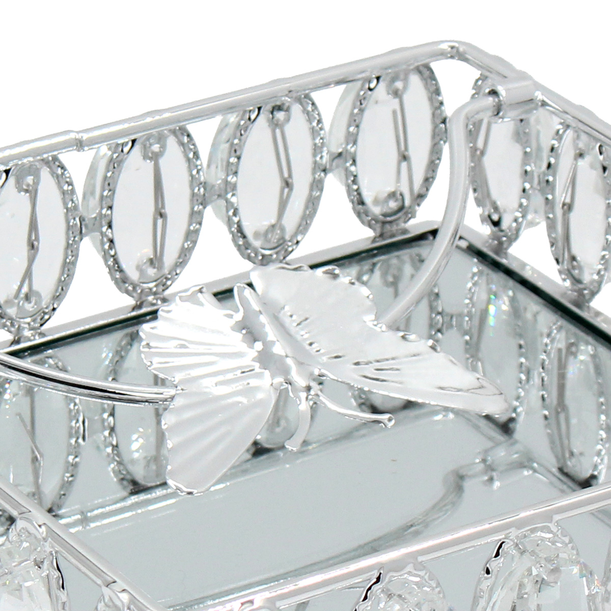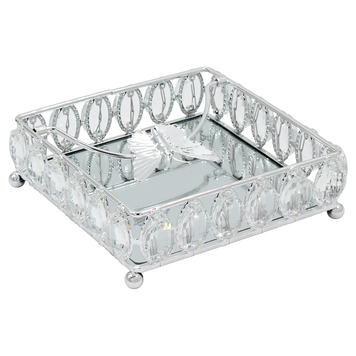 Διακοσμητικό - Χαρτοπετσετοθήκη μεταλλική 18Χ18Χ5,5 εκ. Ασημί με κρύσταλλα και καθρέπτη