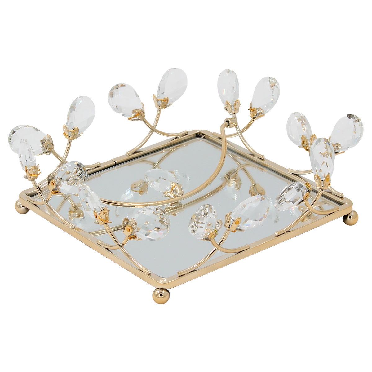 Διακοσμητικό - Χαρτοπετσετοθήκη μεταλλική 20Χ20Χ7 εκ. Χρυσή με κρύσταλλα και καθρέπτη - KESKOR 43267
