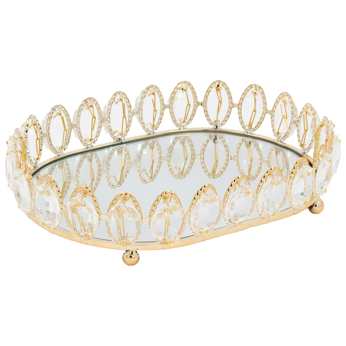 Διακοσμητικό - Δίσκος μεταλλικός 25Χ18Χ5,5 εκ. Χρυσός με καθρέπτη και κρύσταλλα