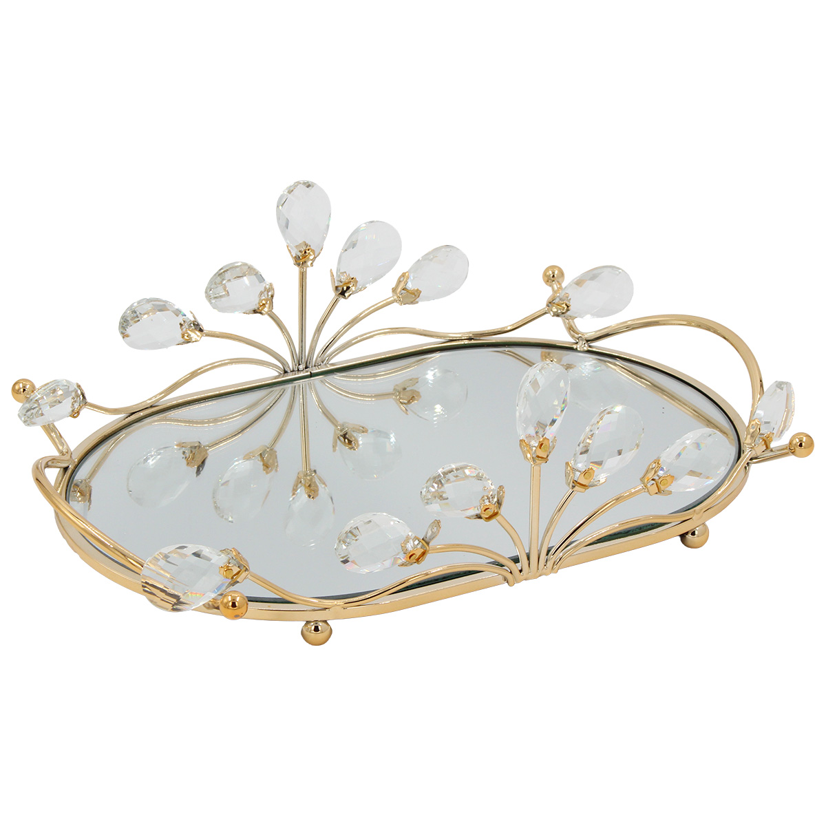Διακοσμητικό - Δίσκος μεταλλικός 31Χ21Χ10 εκ. Χρυσός με καθρέπτη και κρύσταλλα