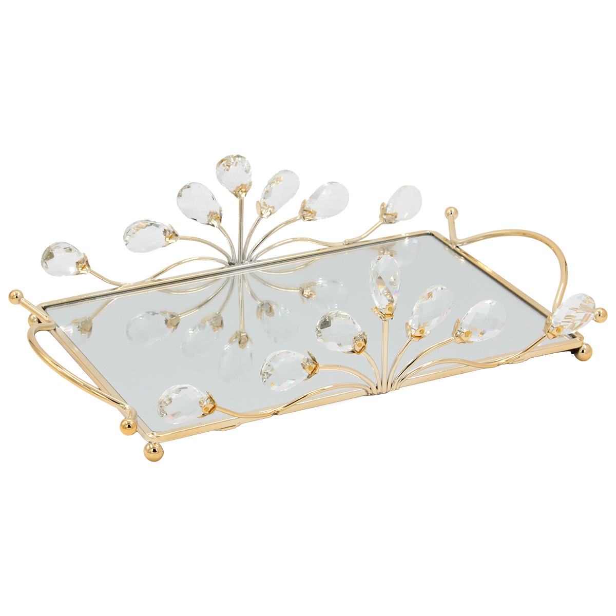 Διακοσμητικό - Δίσκος μεταλλικός 33Χ22Χ10 εκ. Χρυσός με καθρέπτη και κρύσταλλα