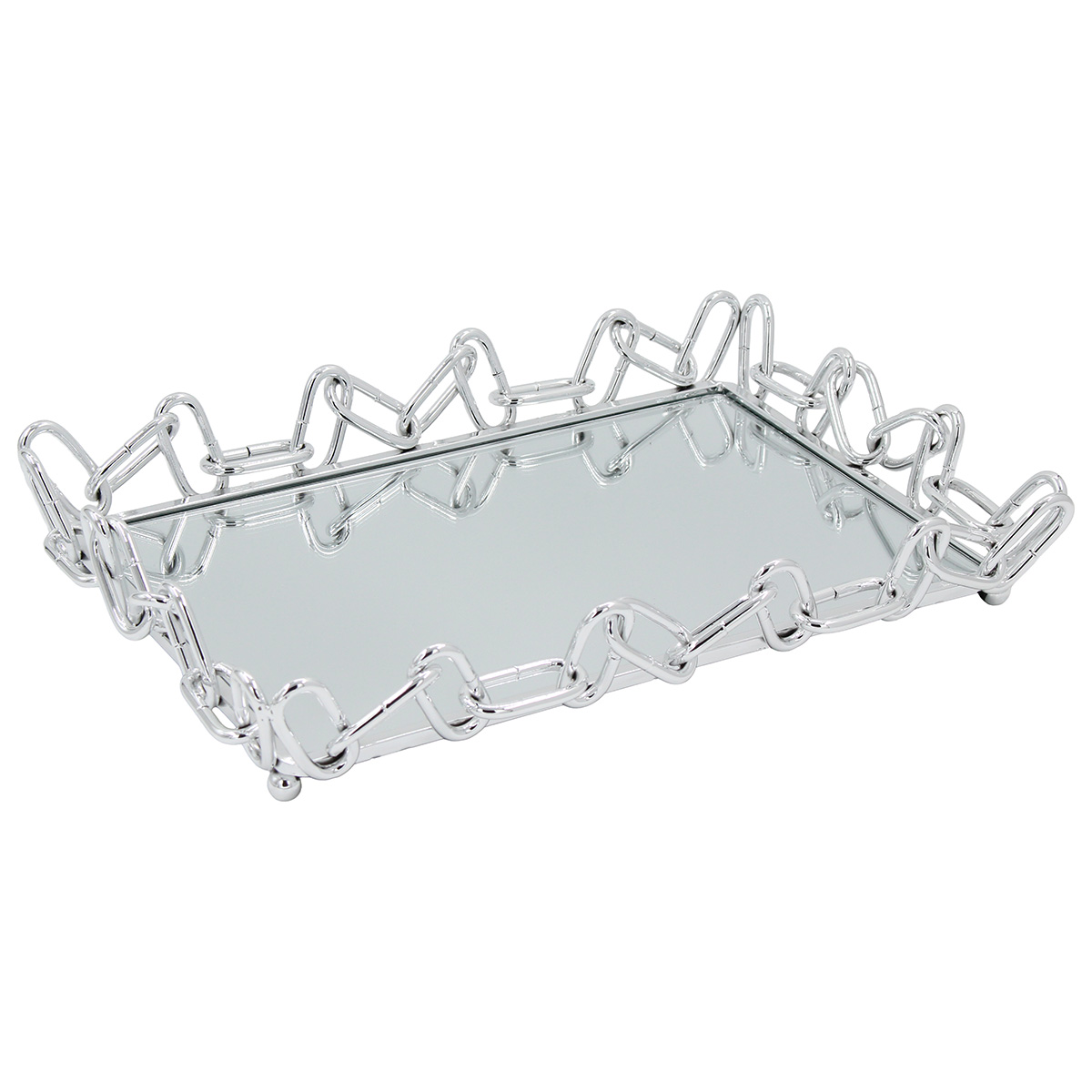 Διακοσμητικό - Δίσκος μεταλλικός 34Χ23Χ5,5 εκ. Ασημί με καθρέπτη