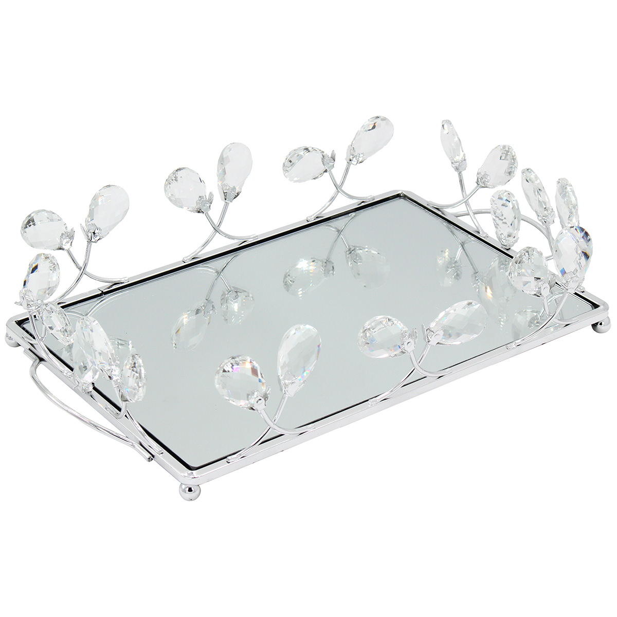 Διακοσμητικό - Δίσκος μεταλλικός 35Χ22Χ7 εκ. Ασημί με καθρέπτη και κρύσταλλα
