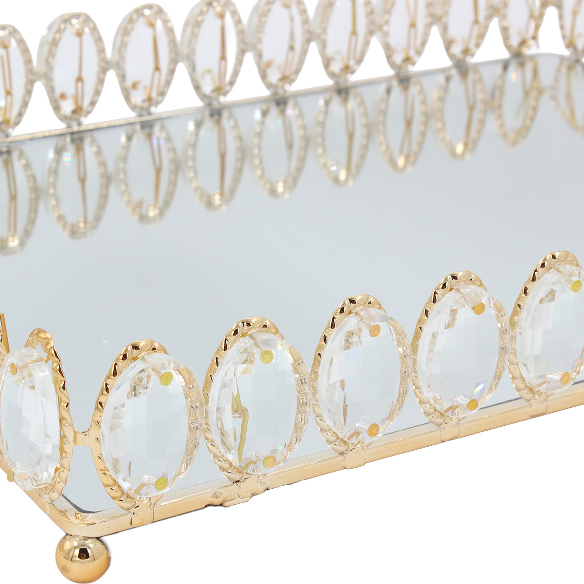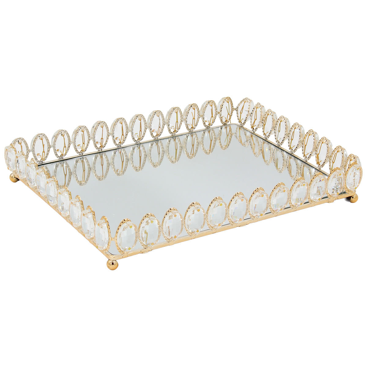 Διακοσμητικό - Δίσκος μεταλλικός 35Χ27Χ5,5 εκ. Χρυσός με καθρέπτη και κρύσταλλα